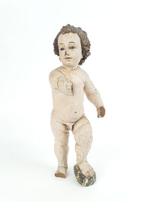 XVIIIème siècle. Enfant Jésus en bois sculpté et laqué.