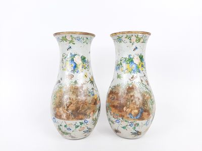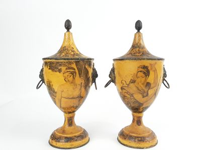 XIXème siècle Paire de vases couverts en tôle laquée à décor…