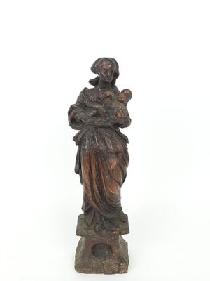 XVIIIème siècle. Vierge à l'enfant en chêne sculpté.
