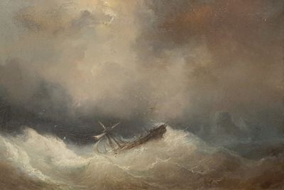 Barthélémy LAUVERGNE (1805-1871) "Navire dans la tempête" 18…