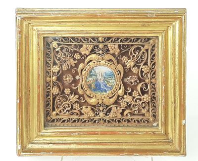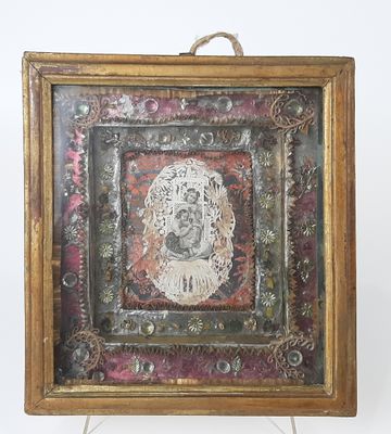Fin XIXème siècle. Cadre reliquaire Arte Povera présentant e…