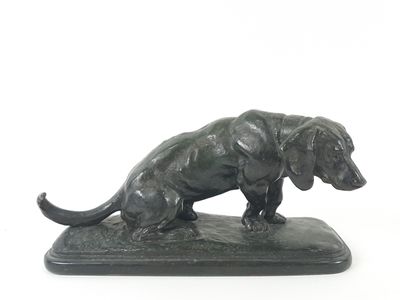 Antoine Louis BARYE (1795-1875) « Chien assis » Bronze patin…