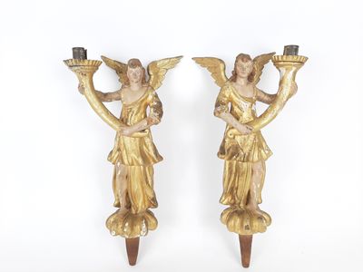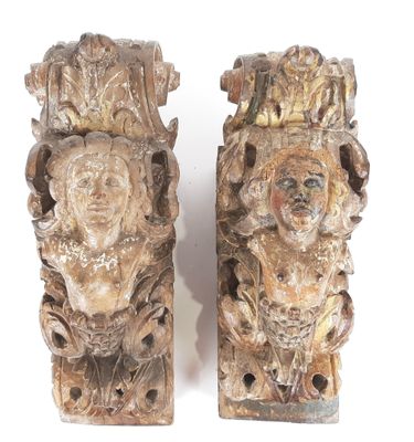 XVIIIème siècle. Paire d'éléments décoratifs en consoles en …