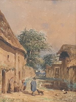 Jules DUPRÉ (1811-1889)"rue de village animée".
