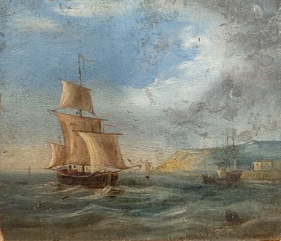 Ecole française du XIXème siècle "Marine" Huile sur panneau …