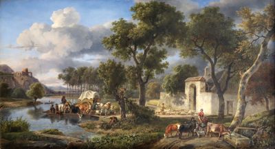 Jean-Louis DEMARNE (1745-1829) Le passage du bac Huile sur t…