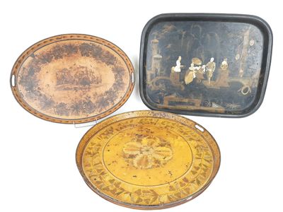 XIXème siècle. Trois plateaux en tôle laquée. Le premier rec…