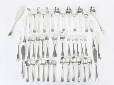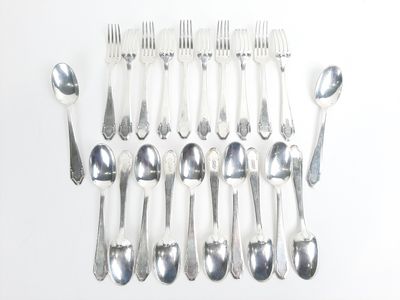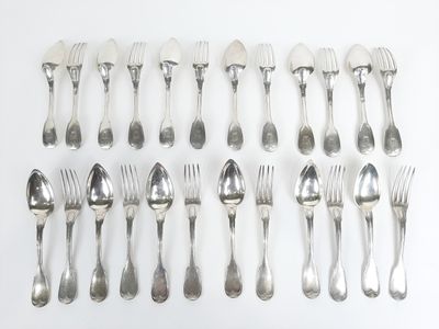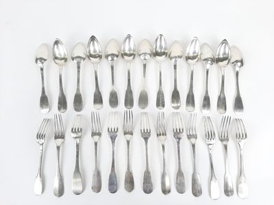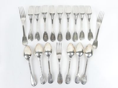 Milieu du XIXème siècle. Treize couverts unis et plats en ar…