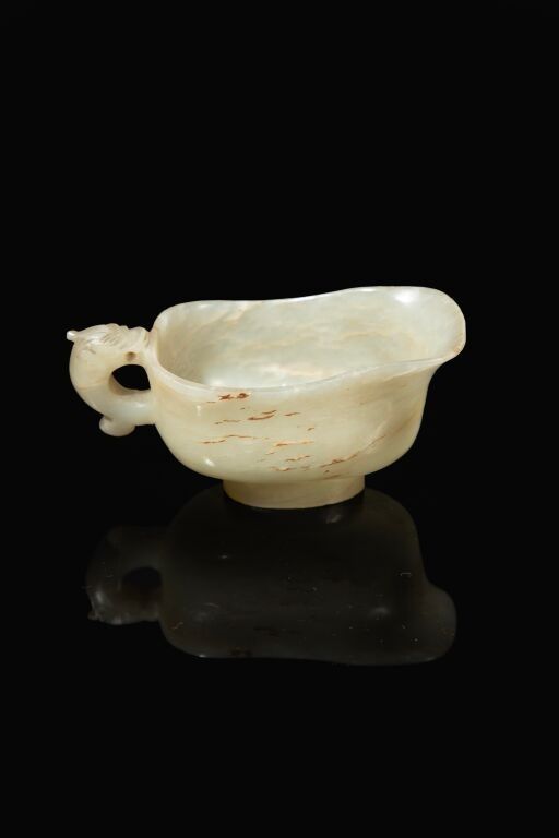Coupe en jade céladon, reposant sur un petit talon, l'anse e…