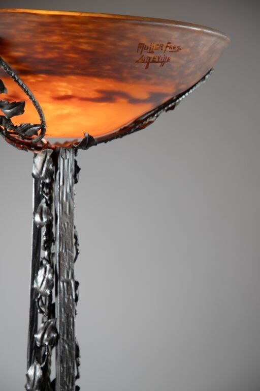 MULLER FRÈRES LUNÉVILLE. Important lampadaire à fût tripode …