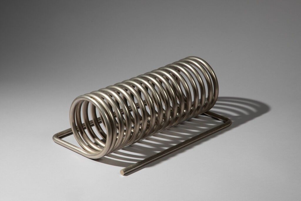 Porte disques ou revues grand modèle de la série Ressorts en acier chromé cintré façon ressort.
