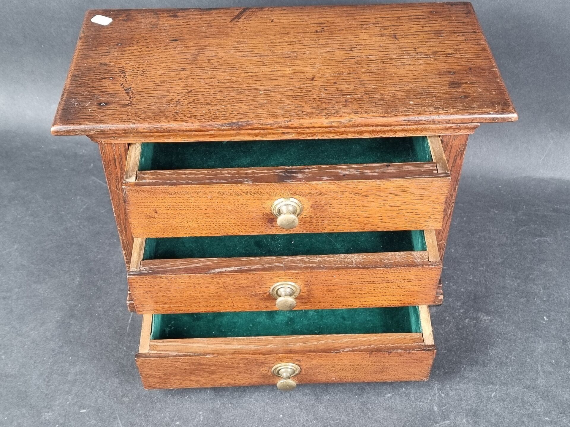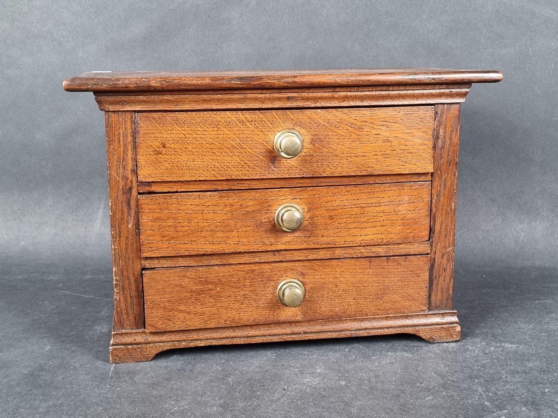 Commode miniature en chêne à trois tiroirs (26 x 38 x 18 cm)
