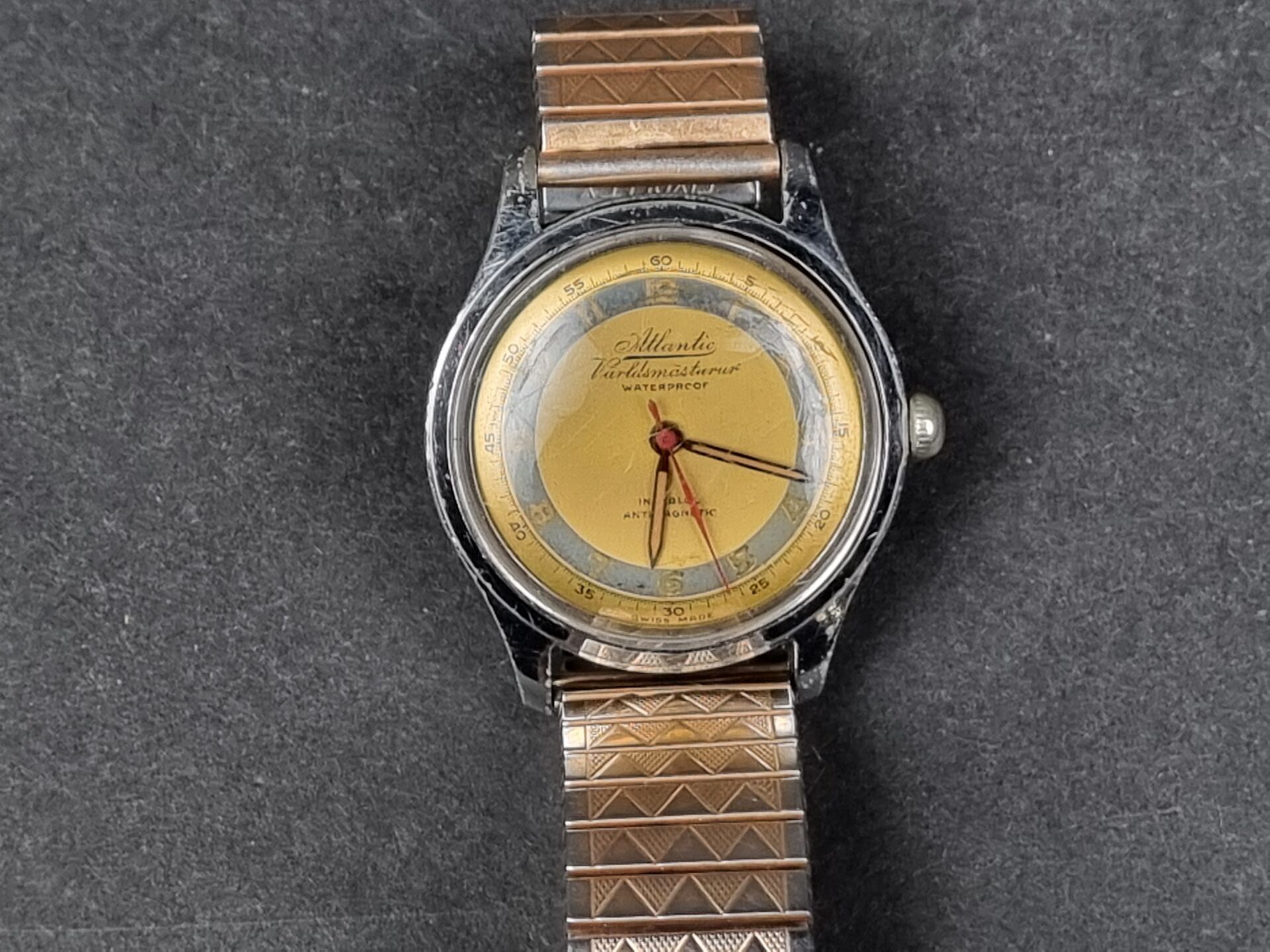 ATLANTIC. Montre bracelet mouvement mécanique, boîtier acier, cadran à chiffres arabes (démarre)