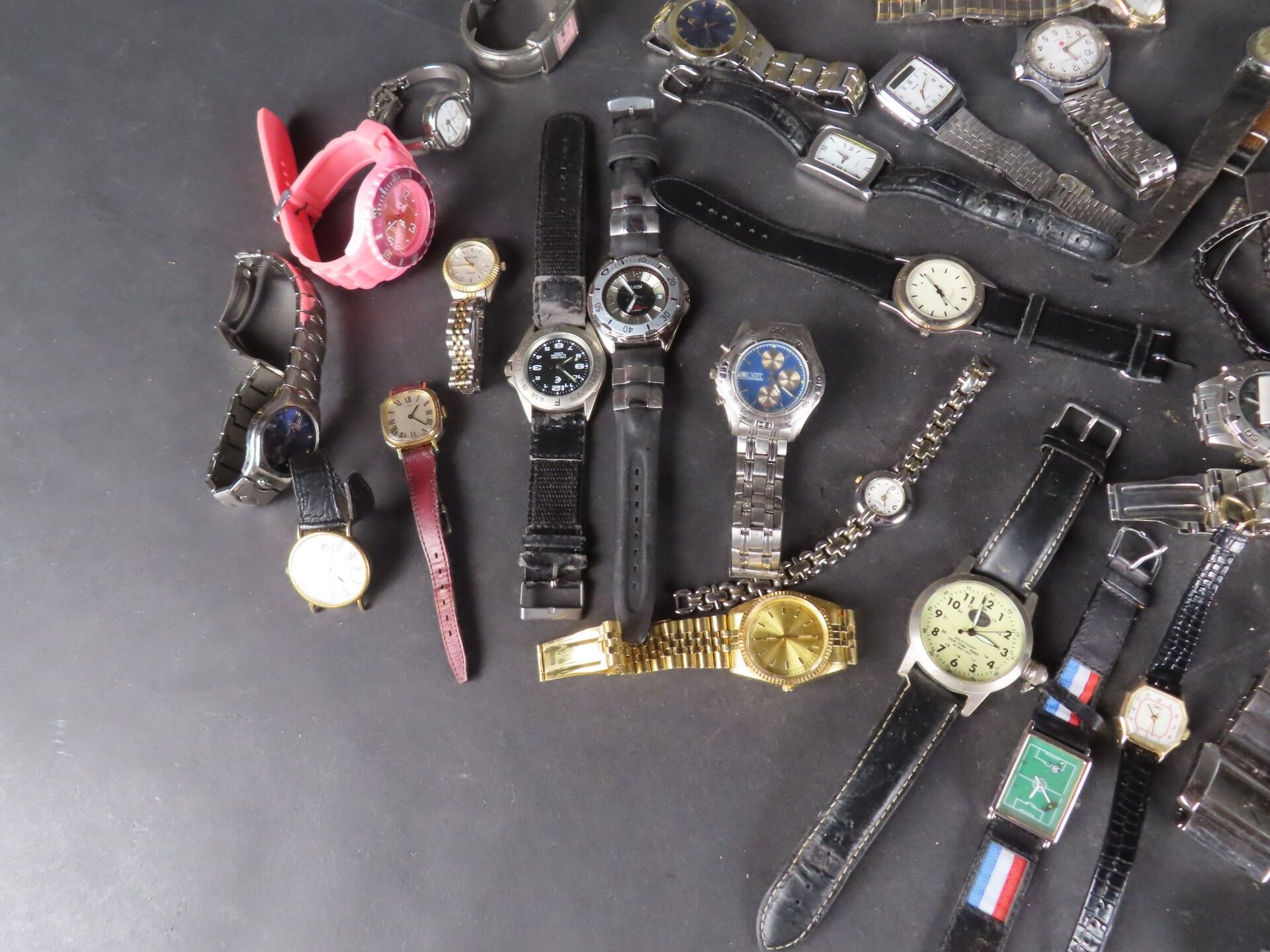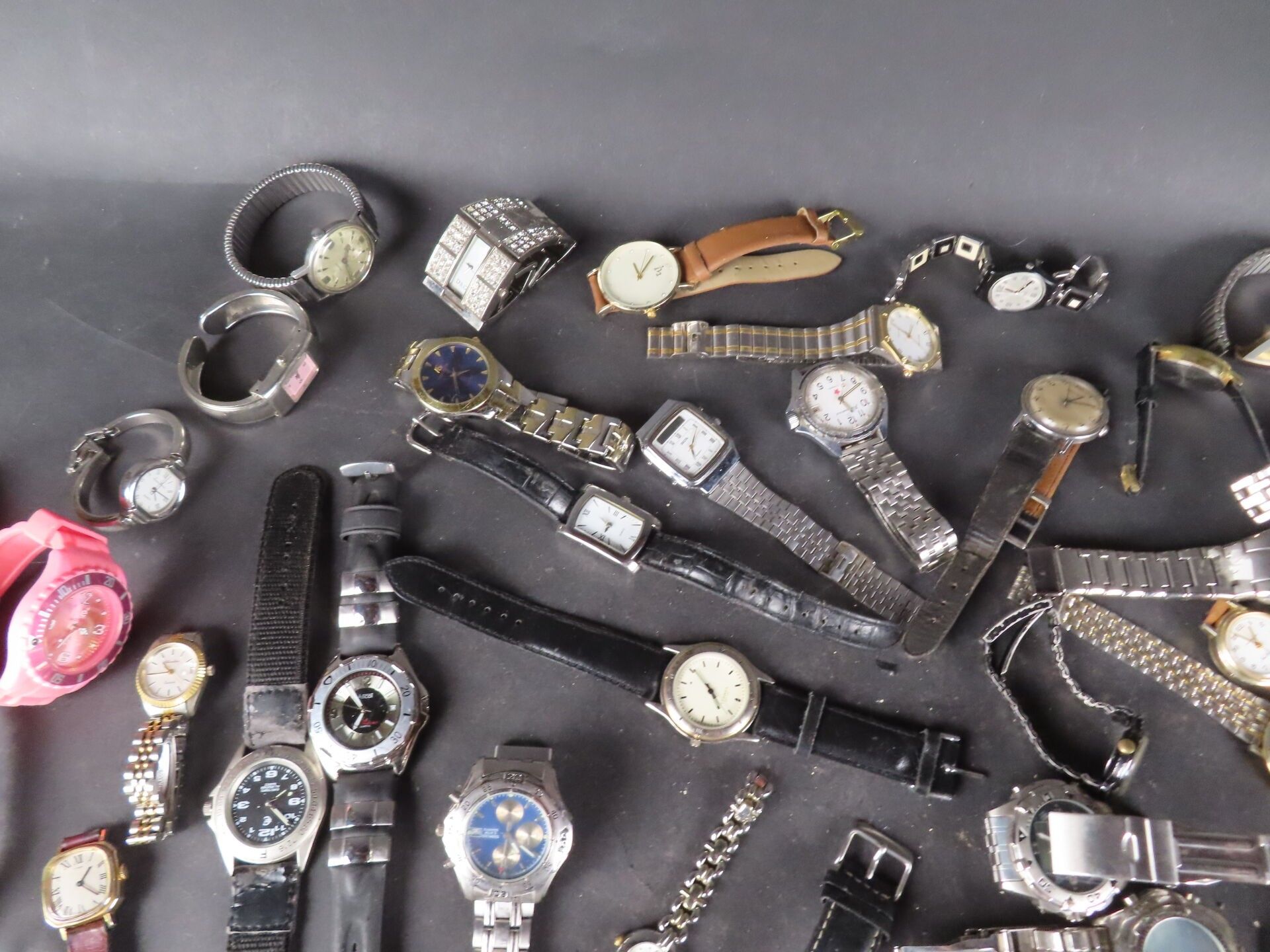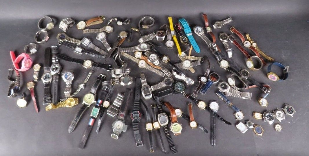 Lot d'environ 84 montres bracelets de diverses marques, principalement quartz, état divers (en l'état, fonctionnement non garanti)