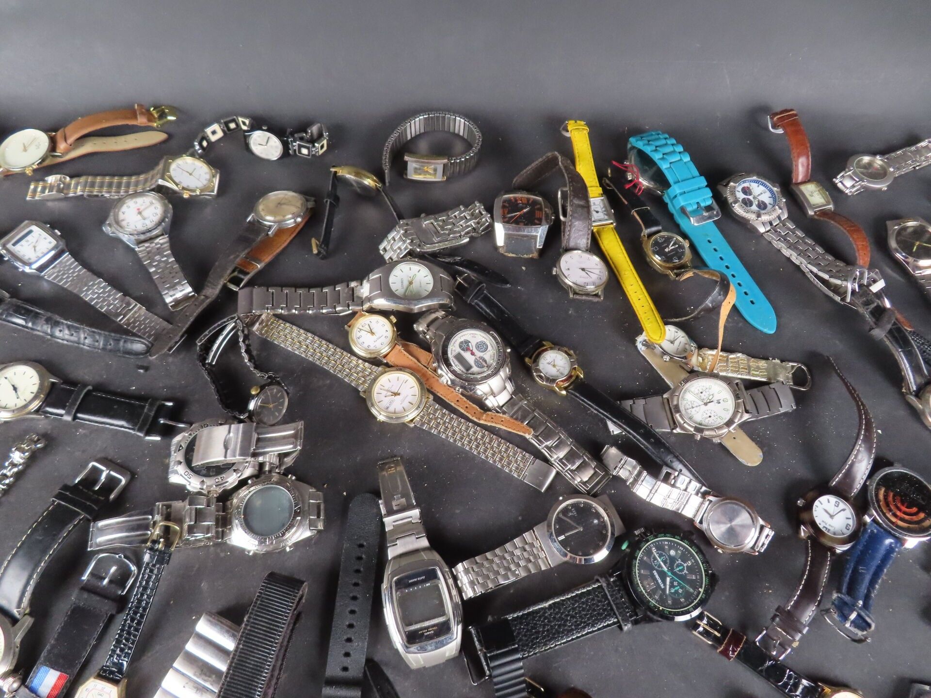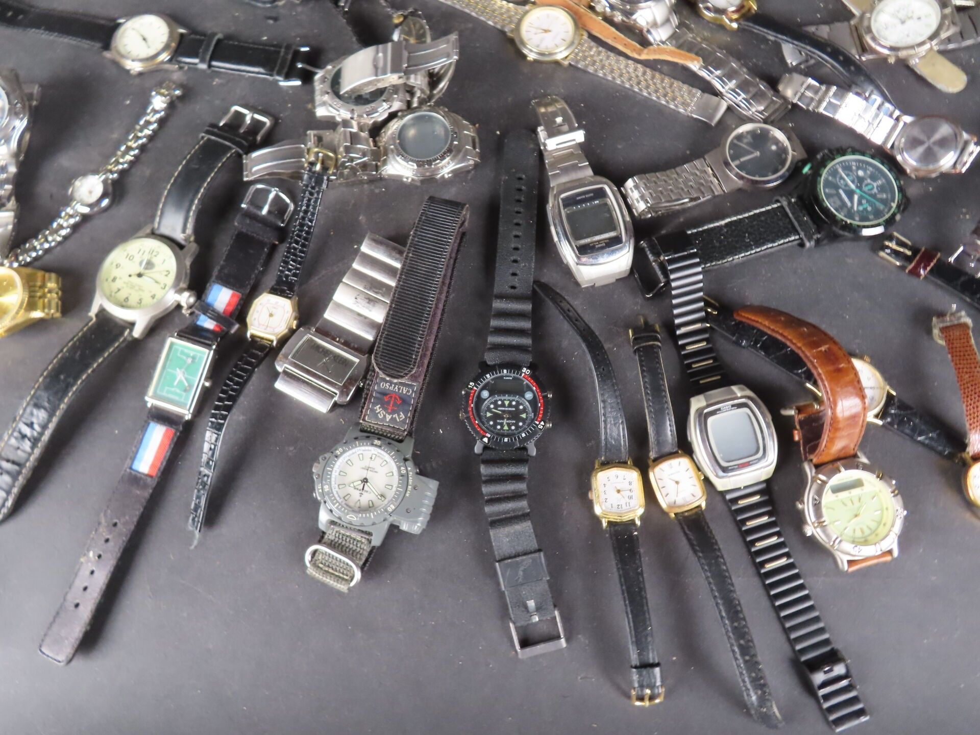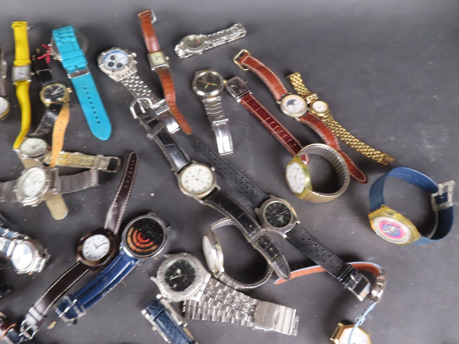 Lot d'environ 84 montres bracelets de diverses marques, principalement quartz, état divers (en l'état, fonctionnement non garanti)