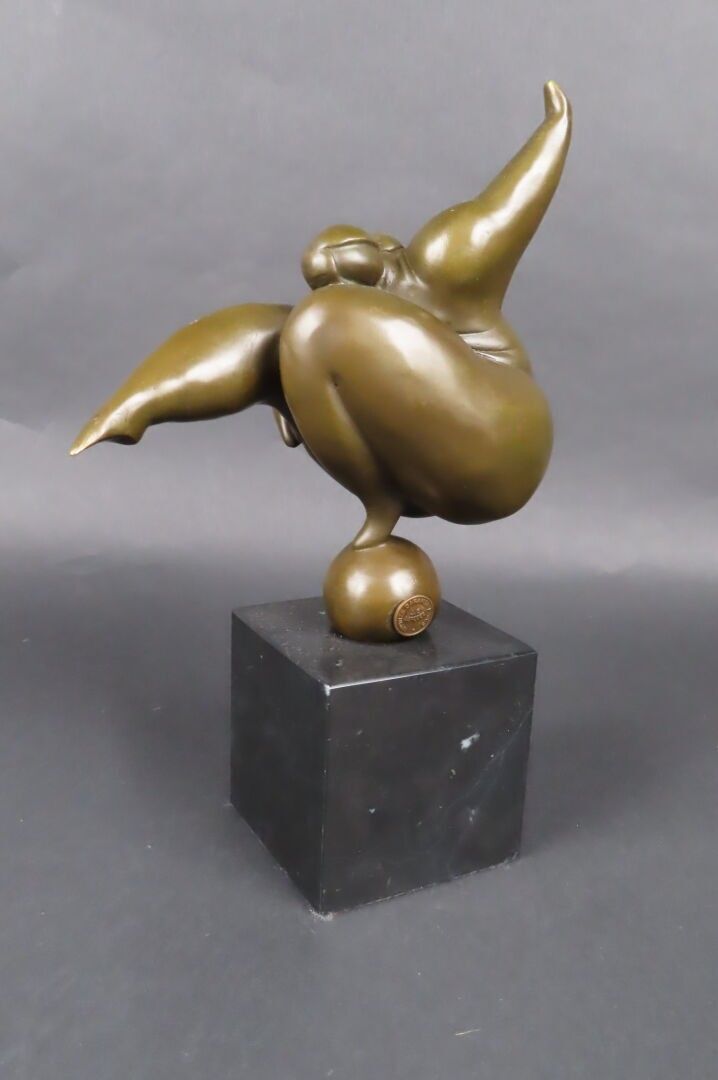 MILO (XXe) "Acrobate", sujet en bronze patiné sur une base en marbre noir, signé, cachet de fondeur (28 x 8 x 8 cm)