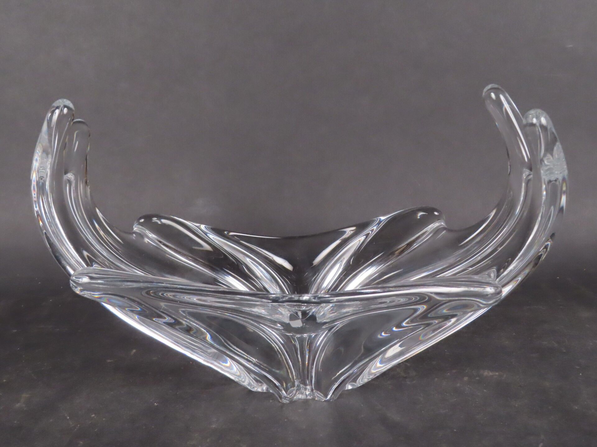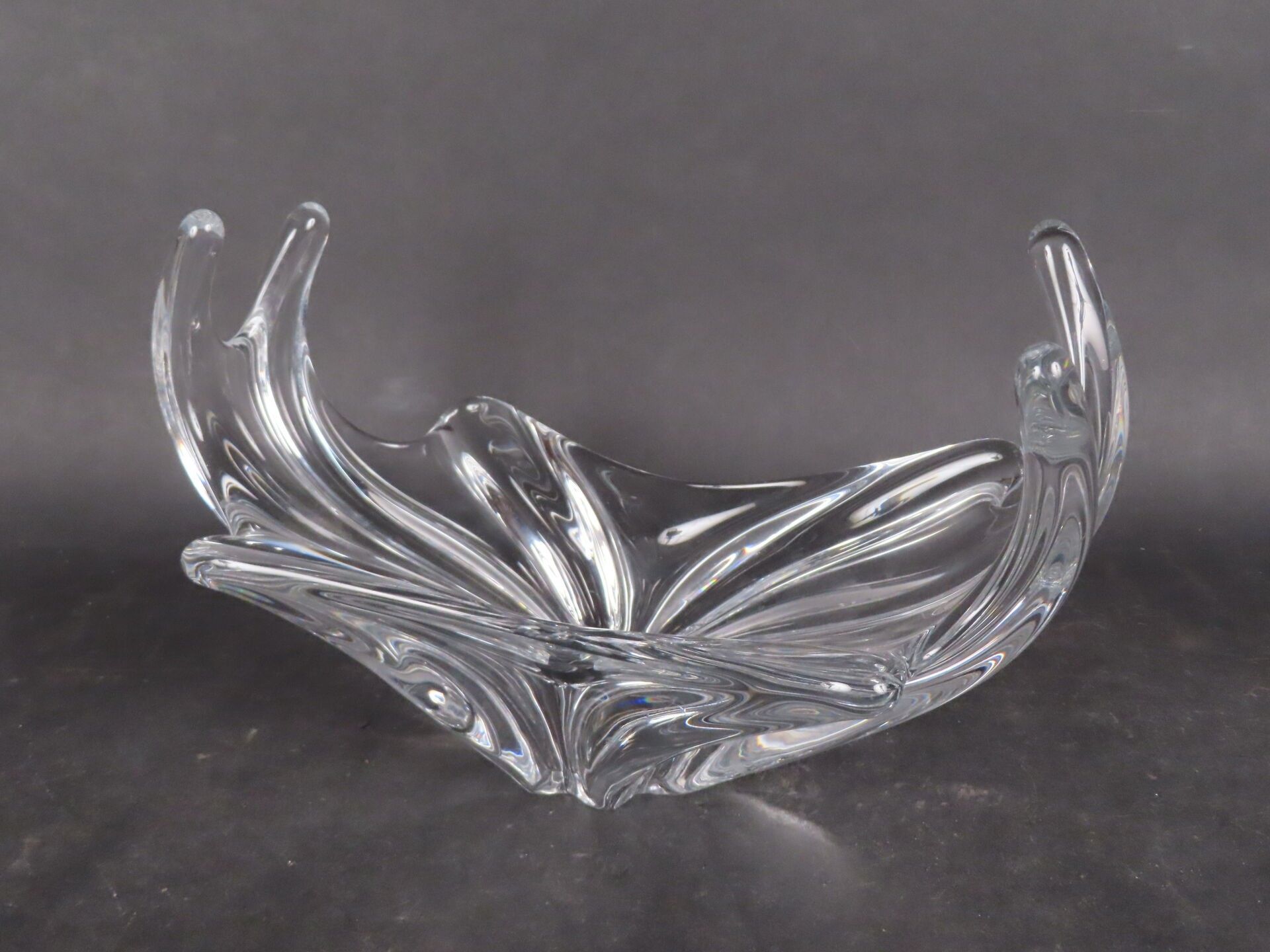 BACCARRAT. Coupe en cristal translucide, à bords relevés, estampille (H : 20 cm, L : 31 cm)