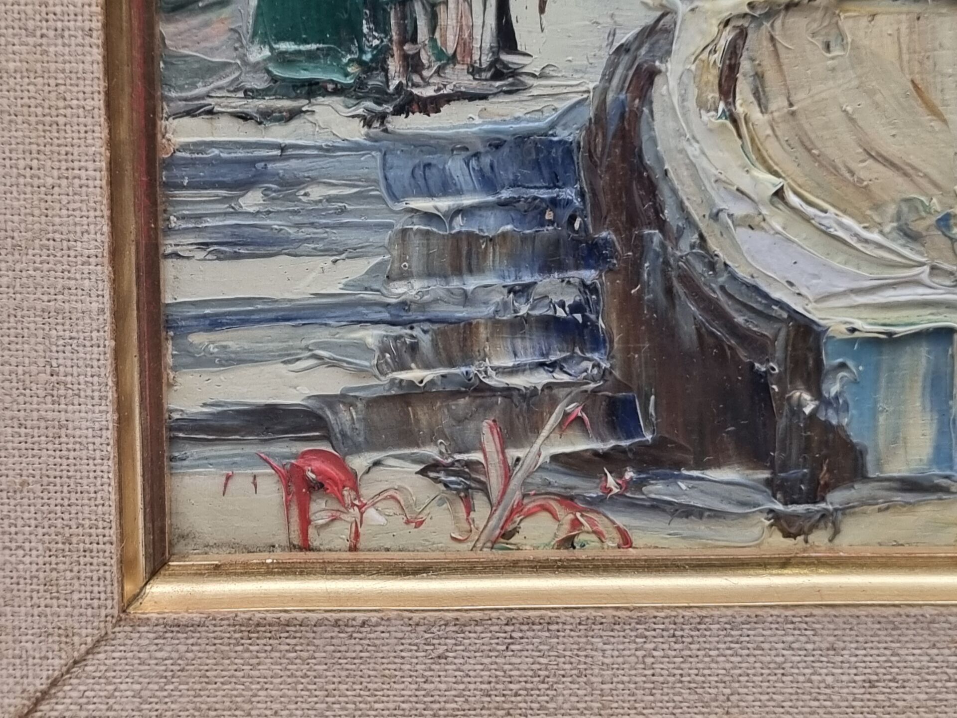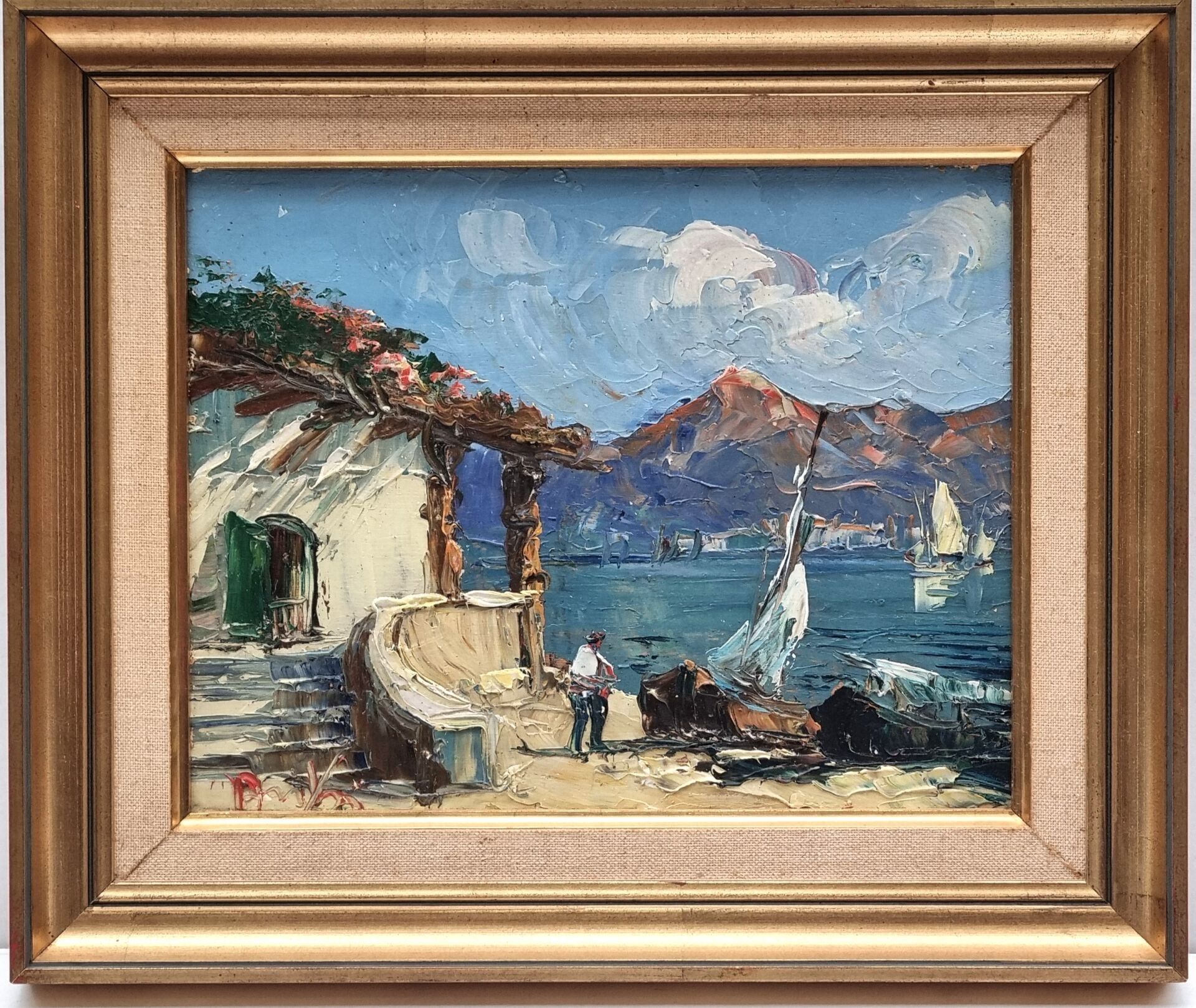 École XXe. "Paysage italien", huile sur panneau, signé en ba…