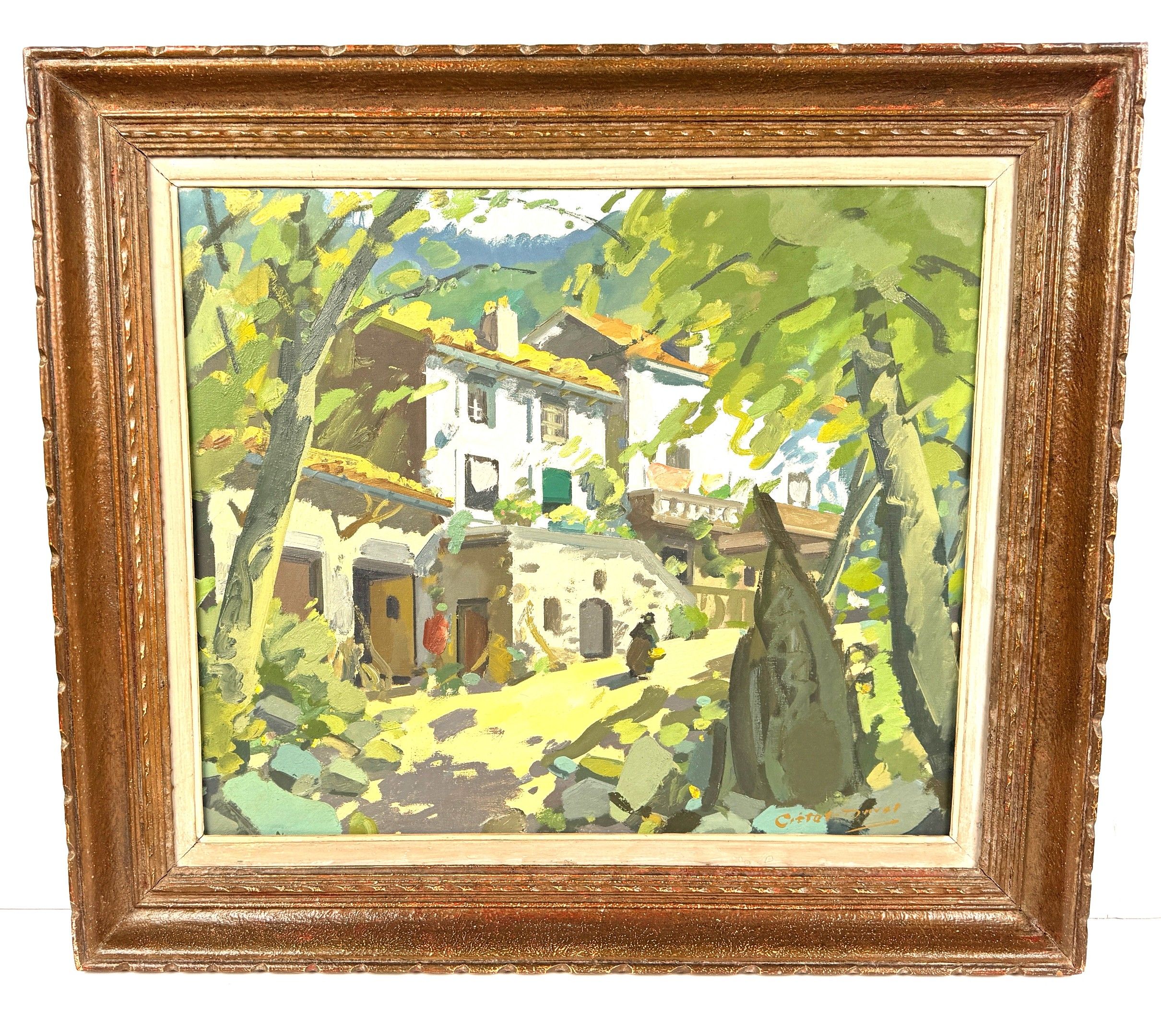 Raymond CRETOT-DUVAL (1895-1986). "Vue d'un village sous les arbres", huile sur toile, signée en bas à droite (46 x 55 cm)