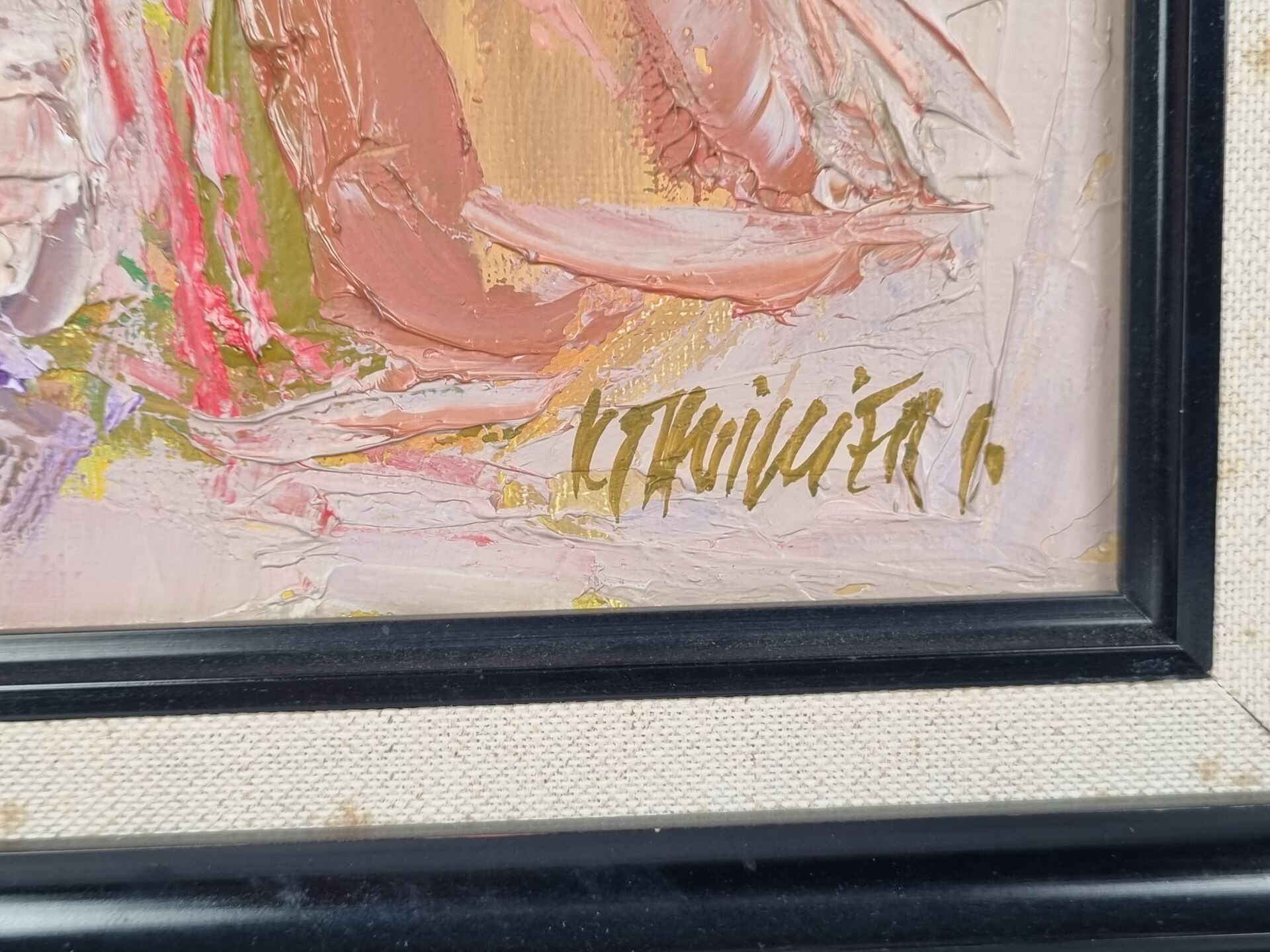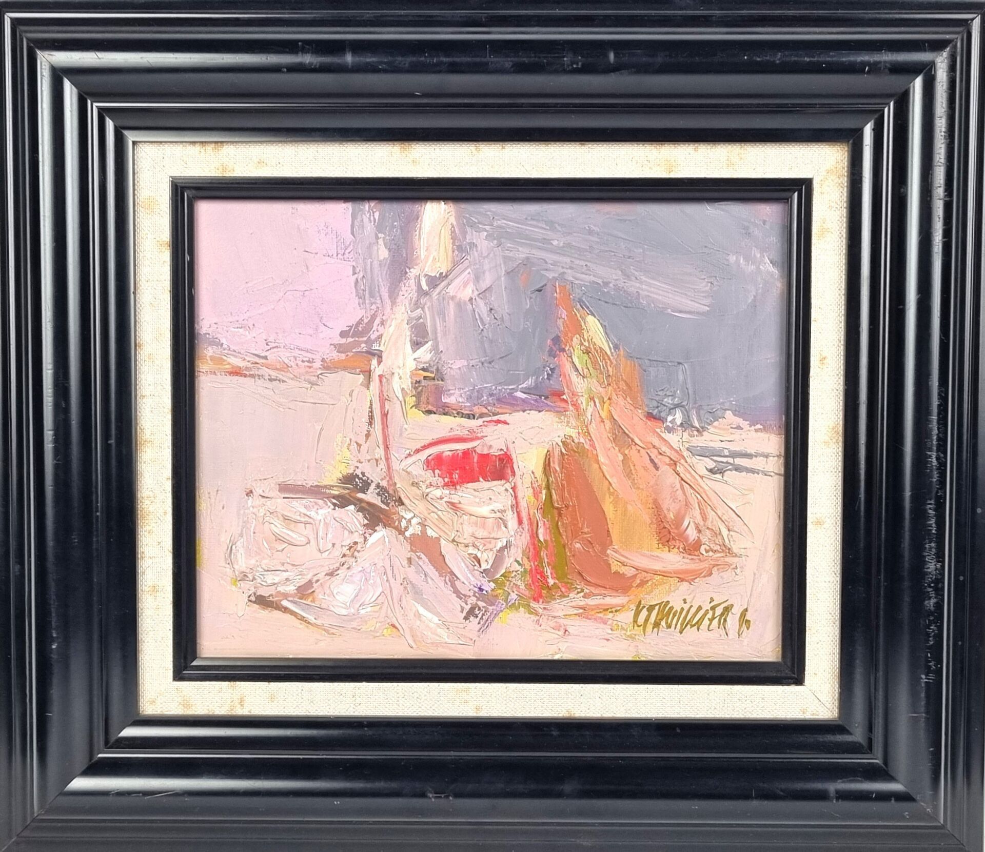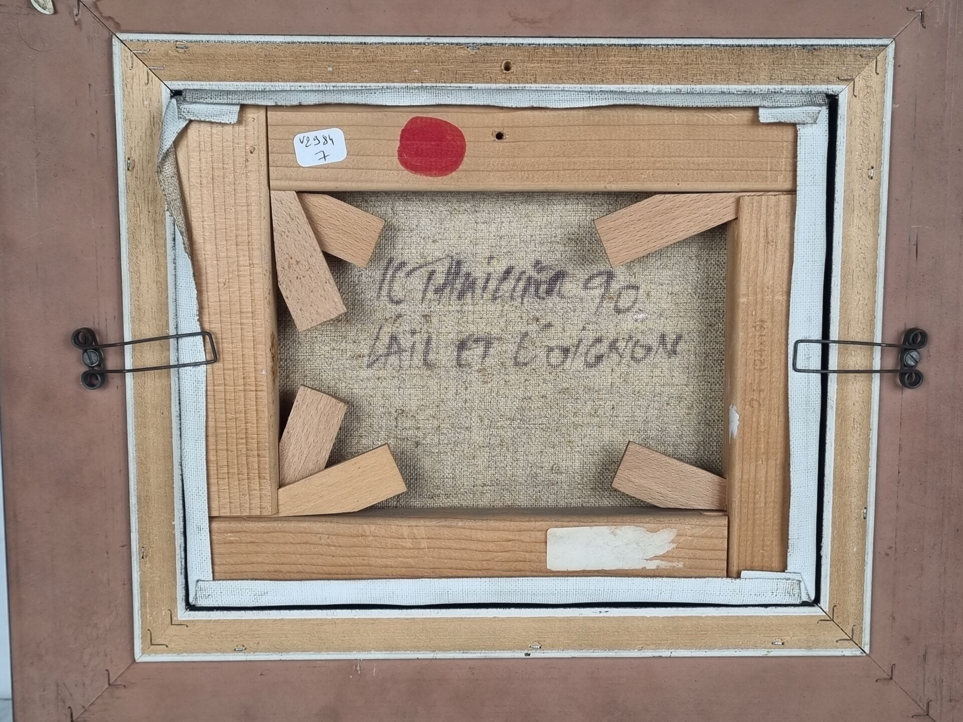 Jean-Claude THUILLIER (né en 1948). "L'ail et l'oignon", huile sur toile, signée en bas à droite, resignée et titrée au revers (19 x 24 cm)