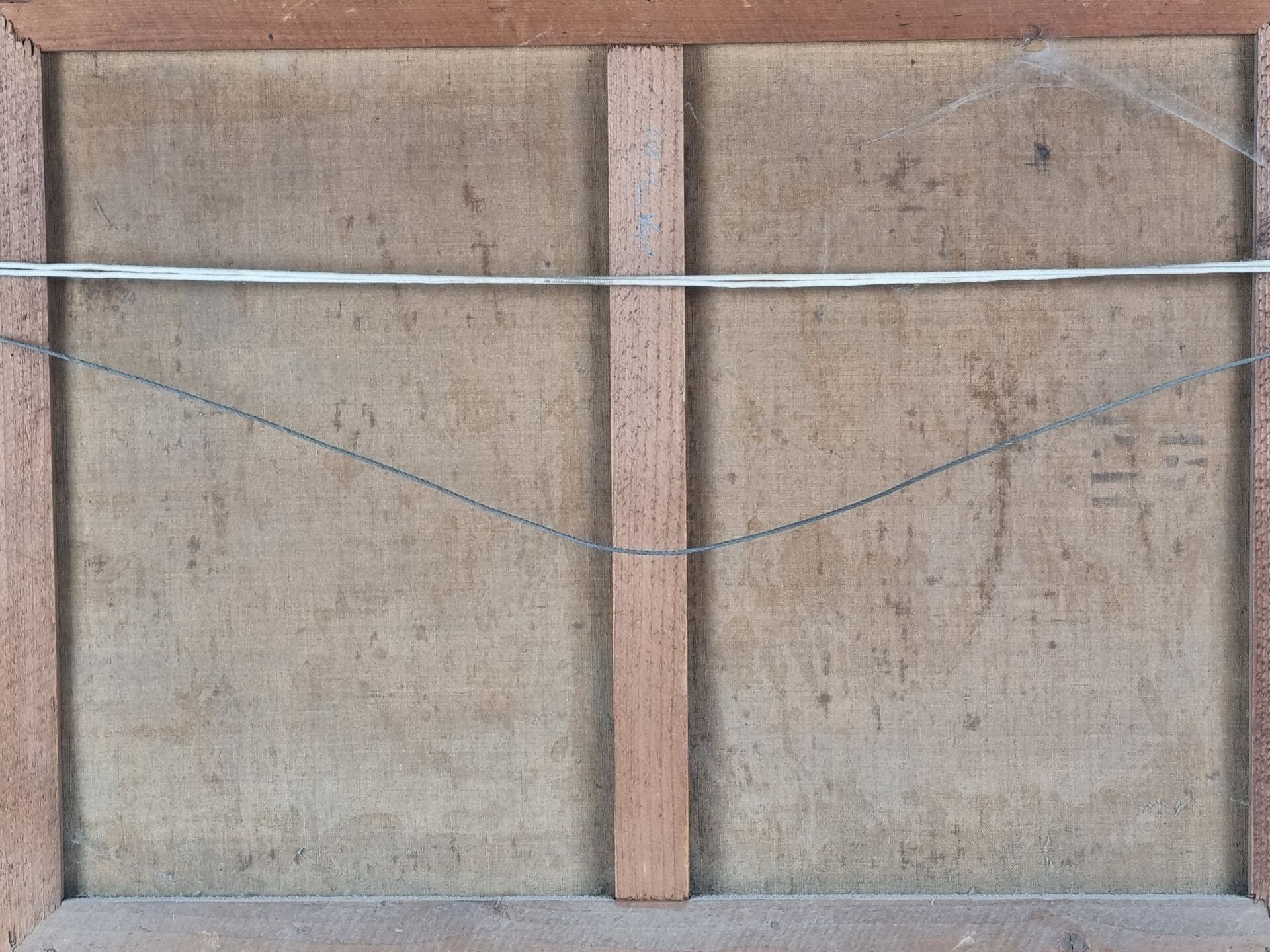 MOREAU (XIXe). "Nature-morte aux cuivres", huile sur toile, signée en bas à gauche et datée '95' (48 x 65 cm) (usures, restaurations)