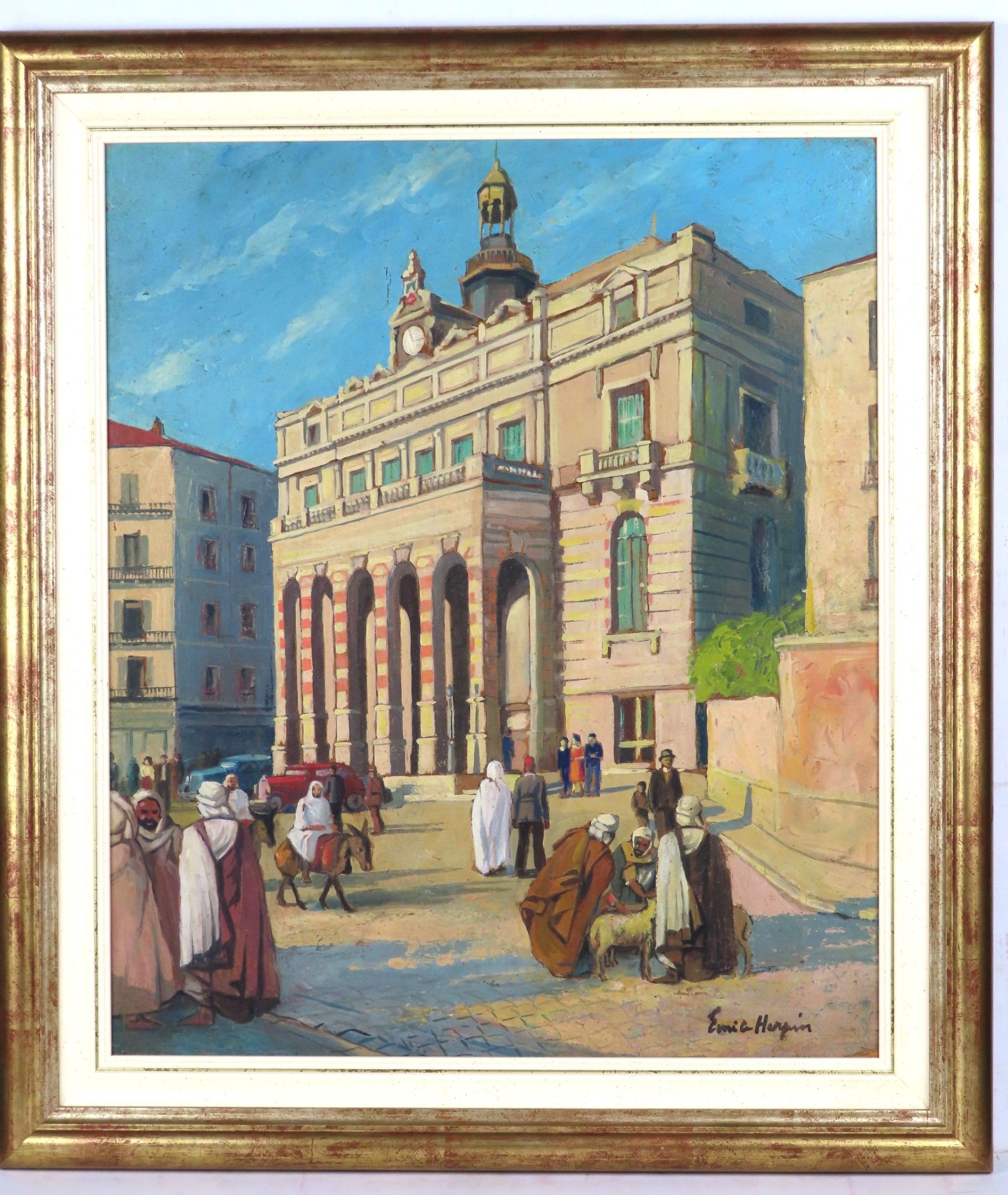 Émile HERPIN (XXe). "Hôtel de ville de Constantine, Algérie", huile sur panneau, signée en bas à droite. Vers 1950 (à vue : 53,5 x 45 cm)