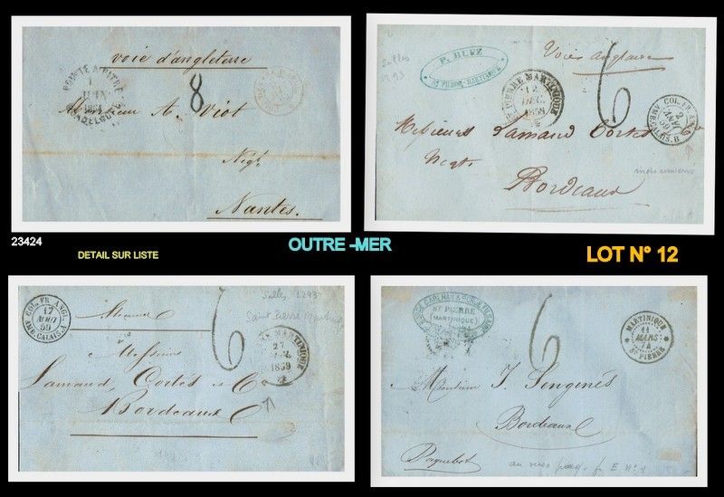 Outre -mer (St Pierre Martinique) Bordeaux 12 décembre 1858 – Taxe tampon façon manuscrite 6 – mois renversé sur cachet d’arrivé.