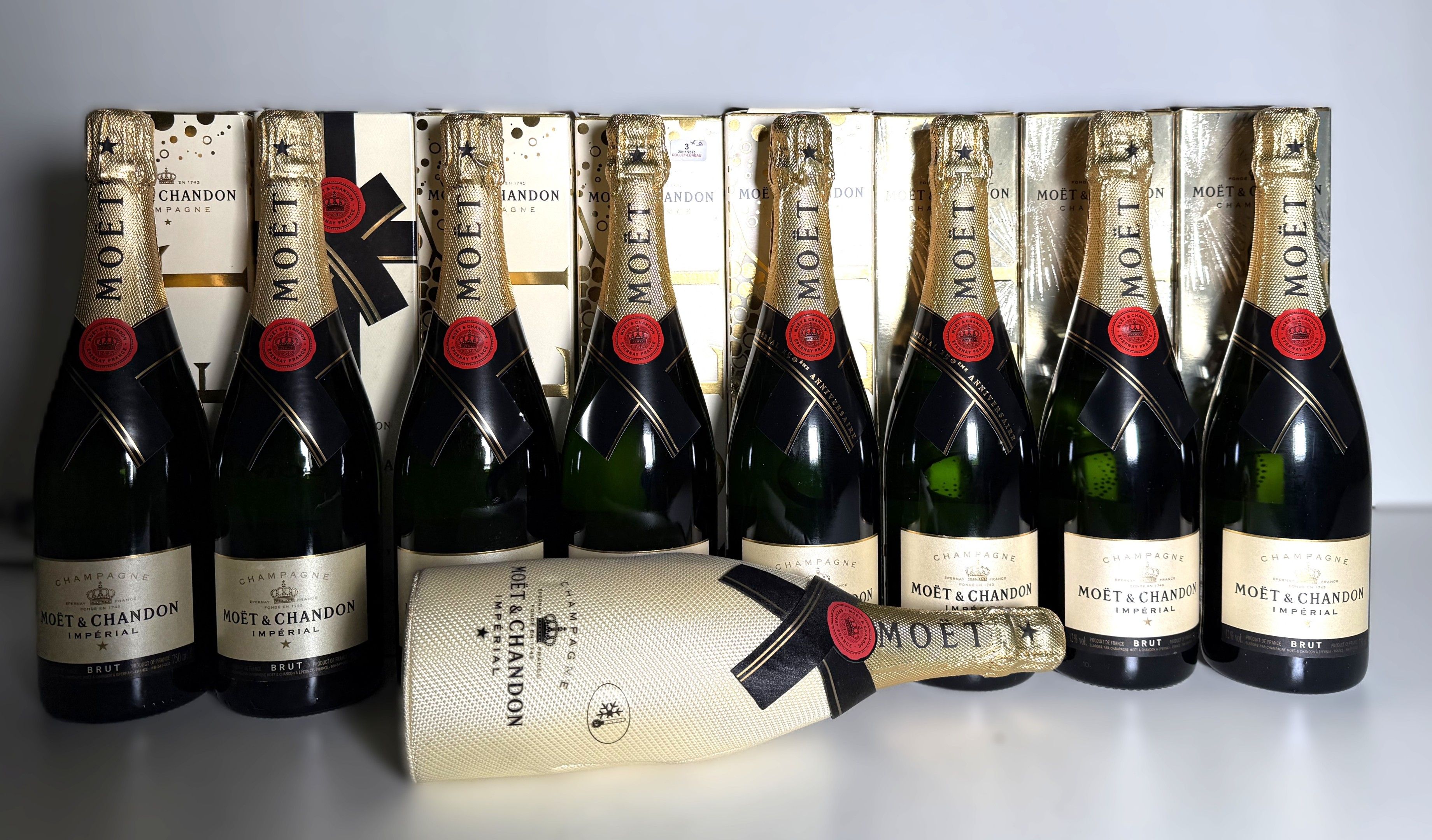 Lot comprenant 9 bouteilles de Champagne dont 8 coffrets Moët et Chandon, cuvée brut imperial et une sous blister cuvée brut impérial