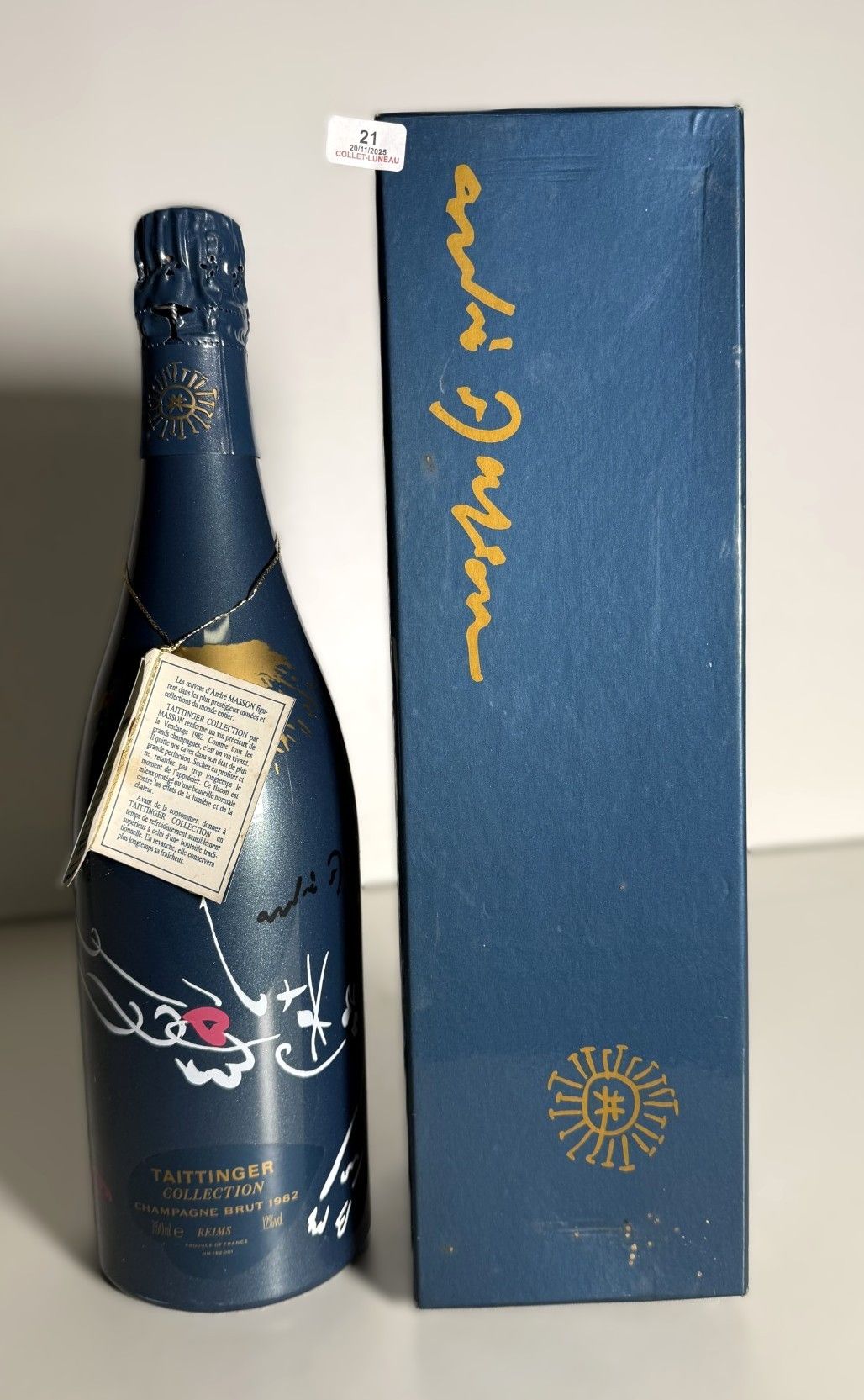 1 bouteille ChampagneTaittinger collection 1982 édition Masson en coffret abimé