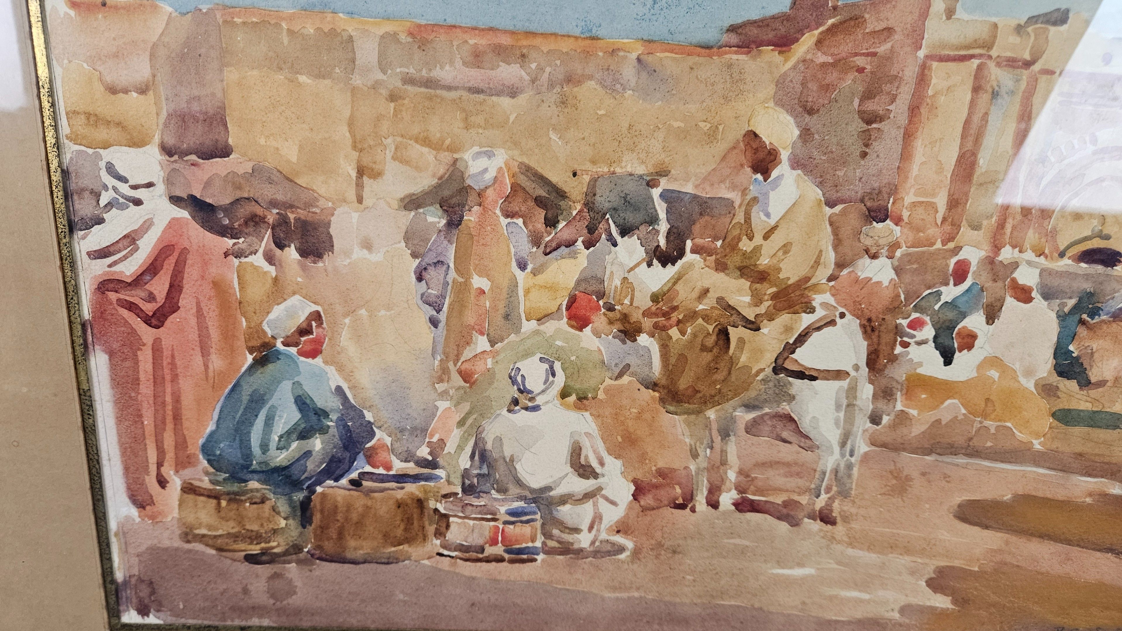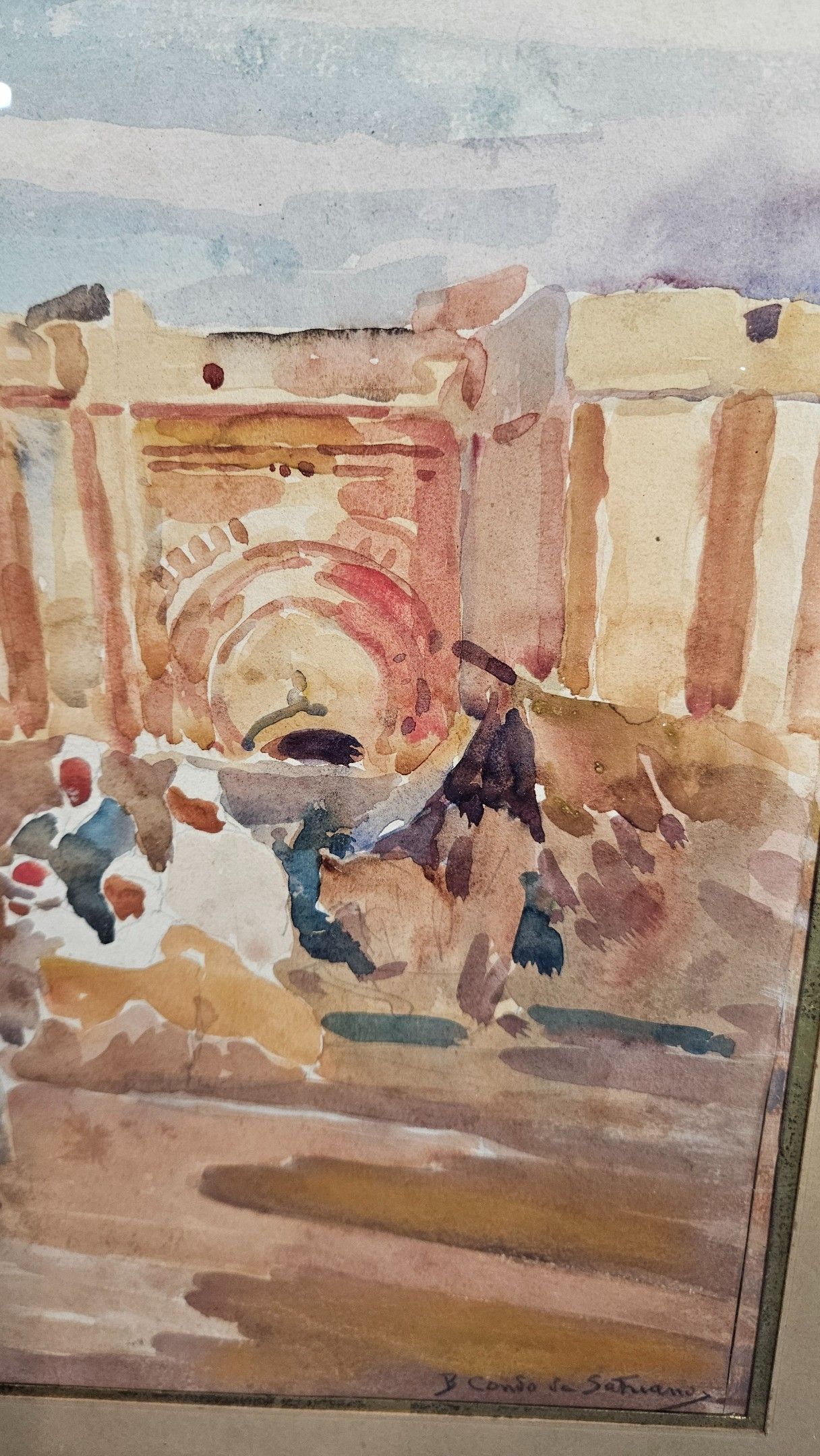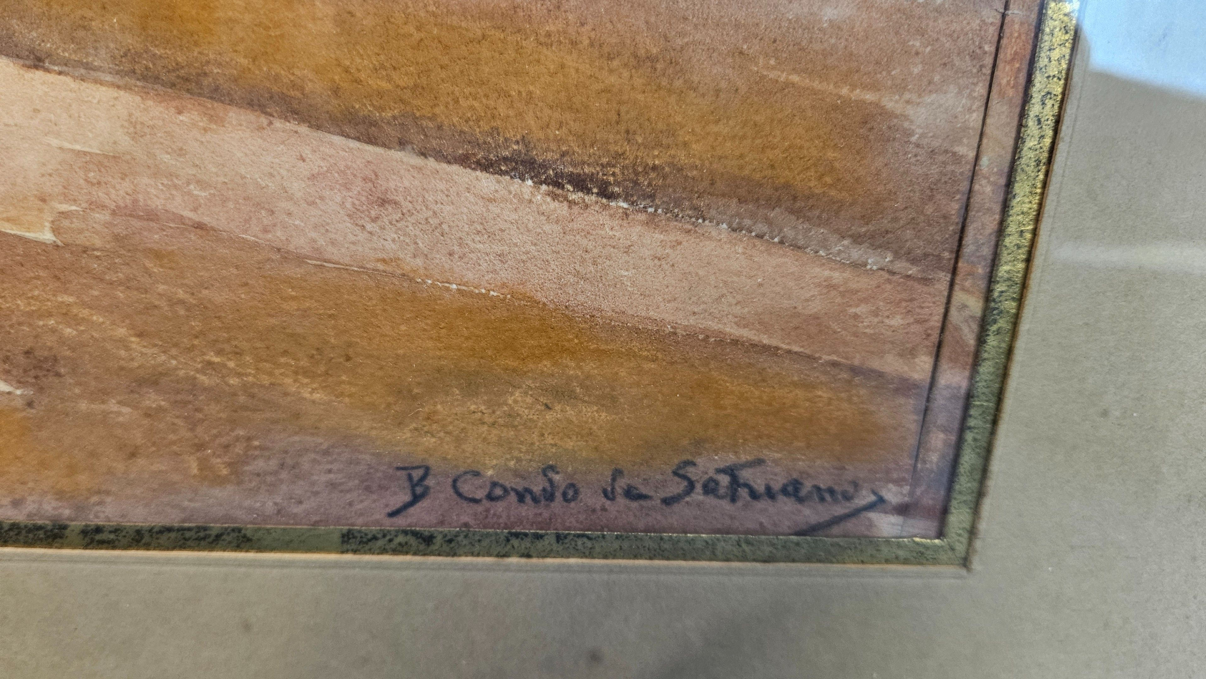 B. CONDO SATRIANO DE : "Marché devant les remparts d'une ville marocaine". Aquarelle, SBD, 32 x 46 cm à vue
