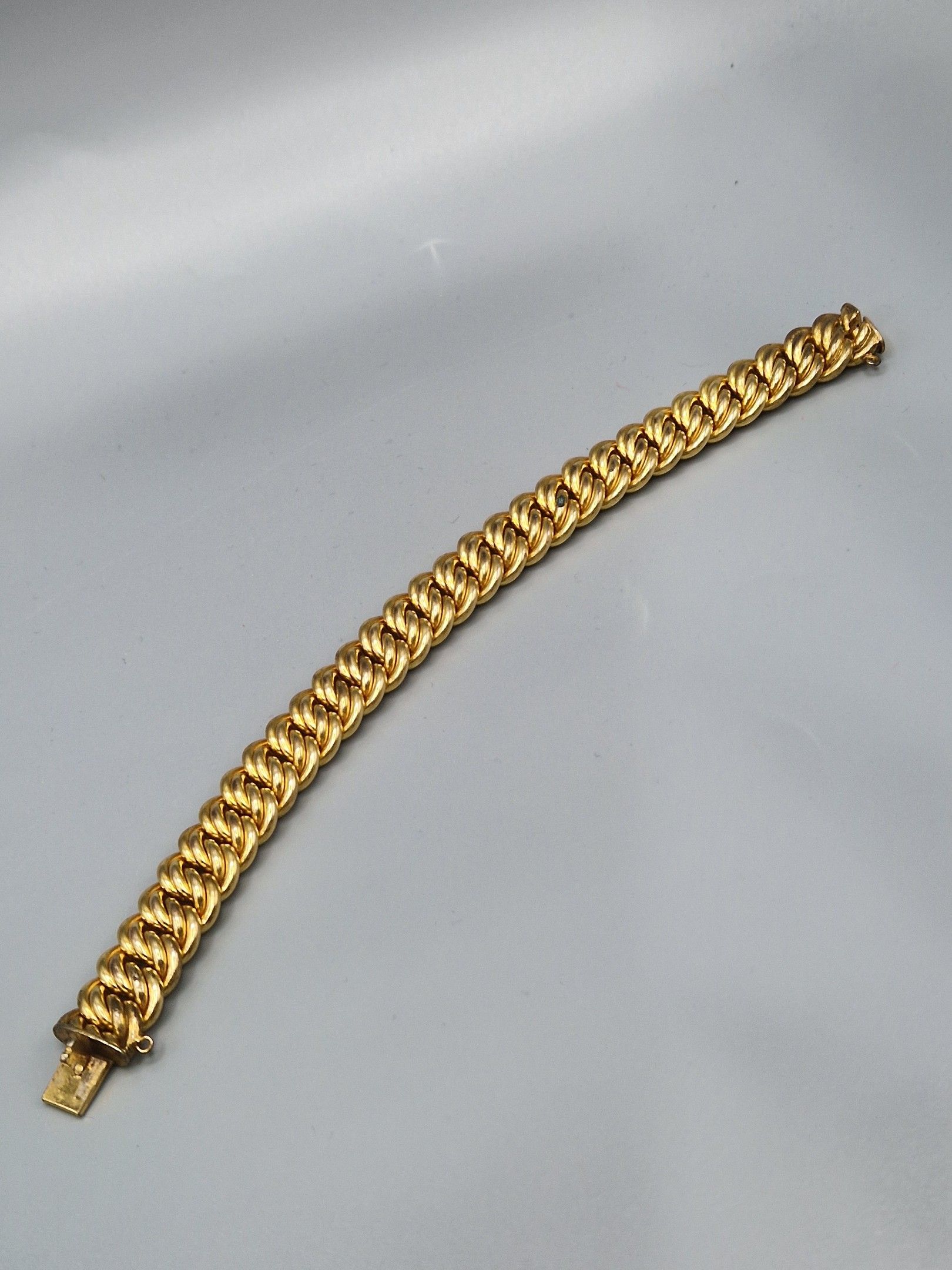 Bracelet articulé métal doré à maille américaine. Tour de poignet : 18 cm