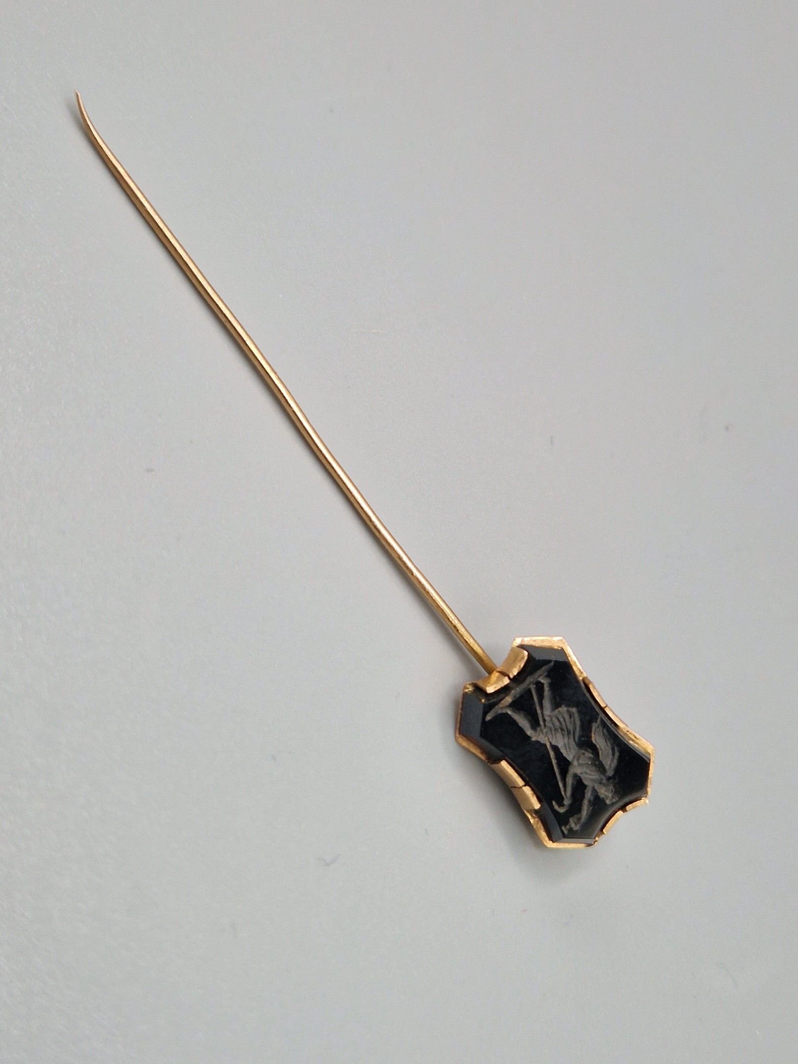 Epingle en or (en règle) la tête ornée d'un jais à figure mythologique en intaille. 2,3 gr brut