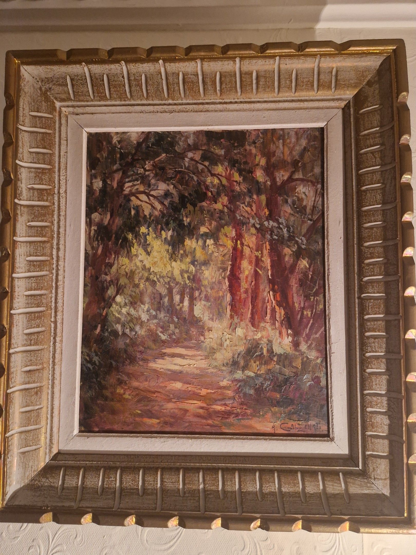 GALZINATI : "Chemin dans la forêt d'eucalyptus". Huile sur toile, SBD, 41 x 33 cm