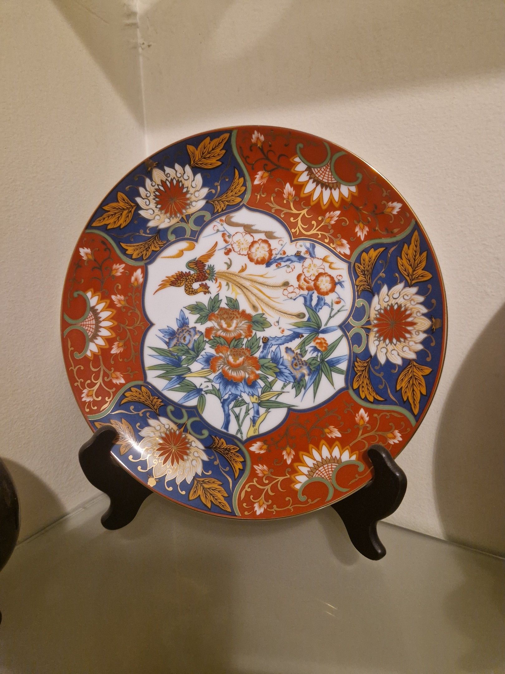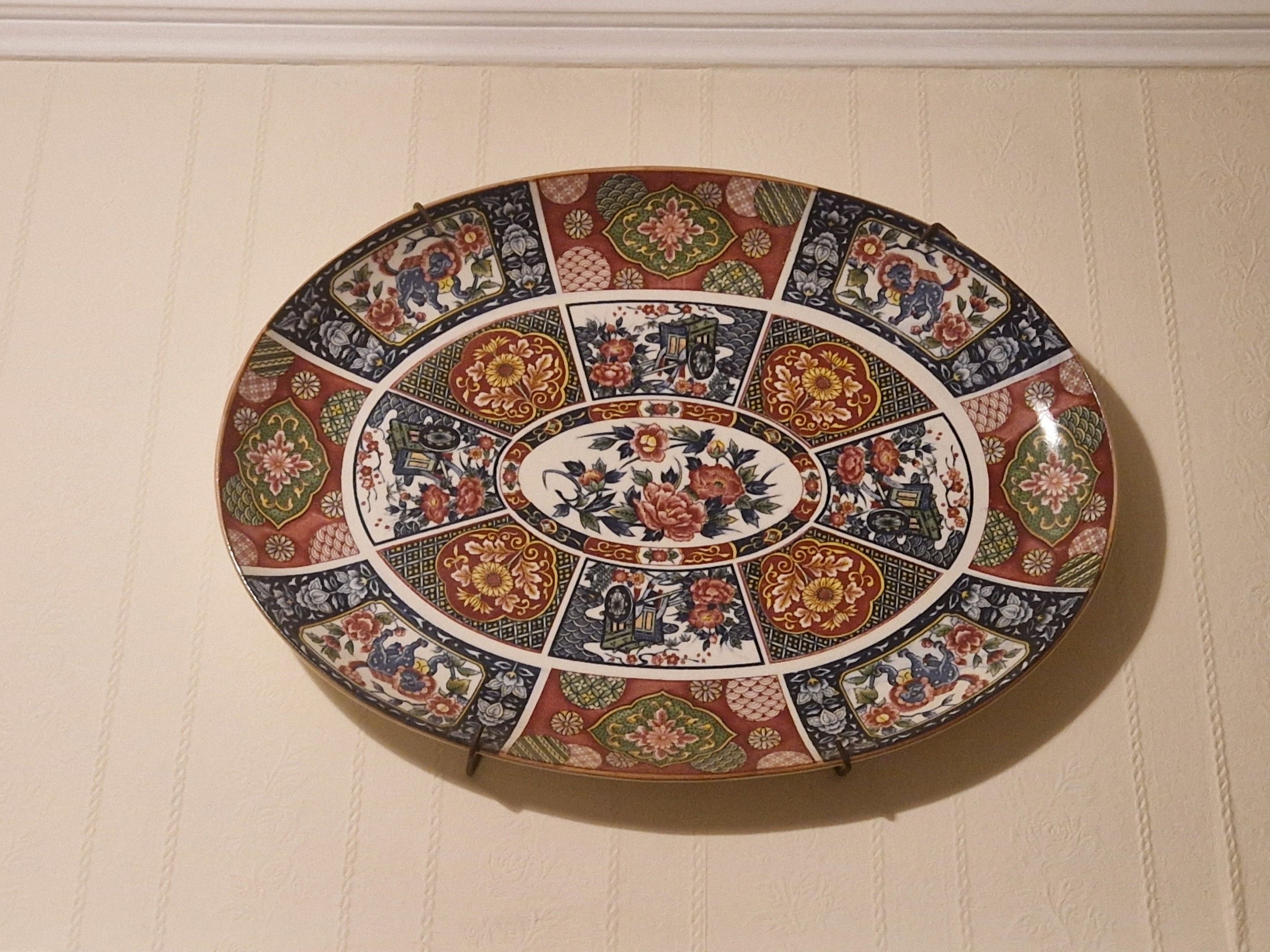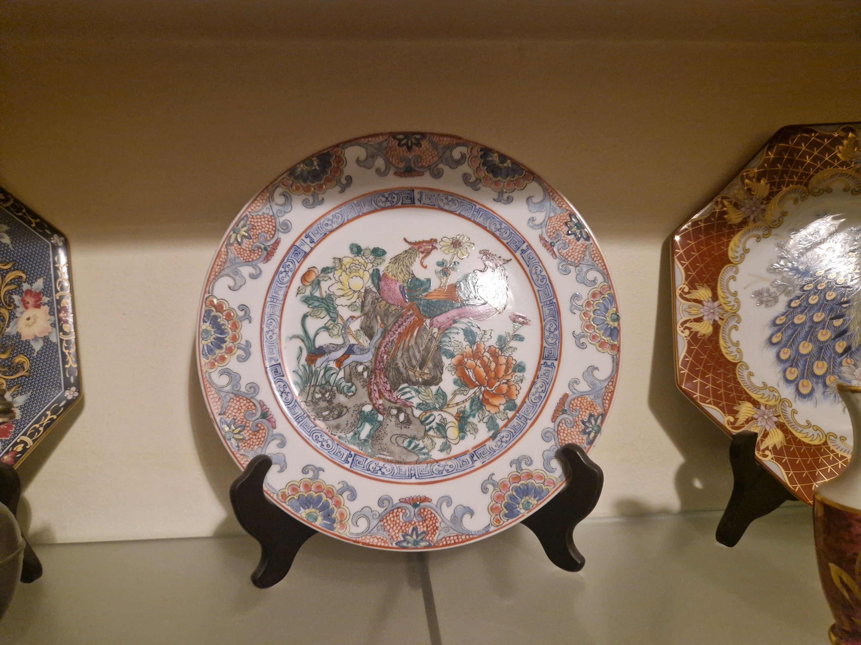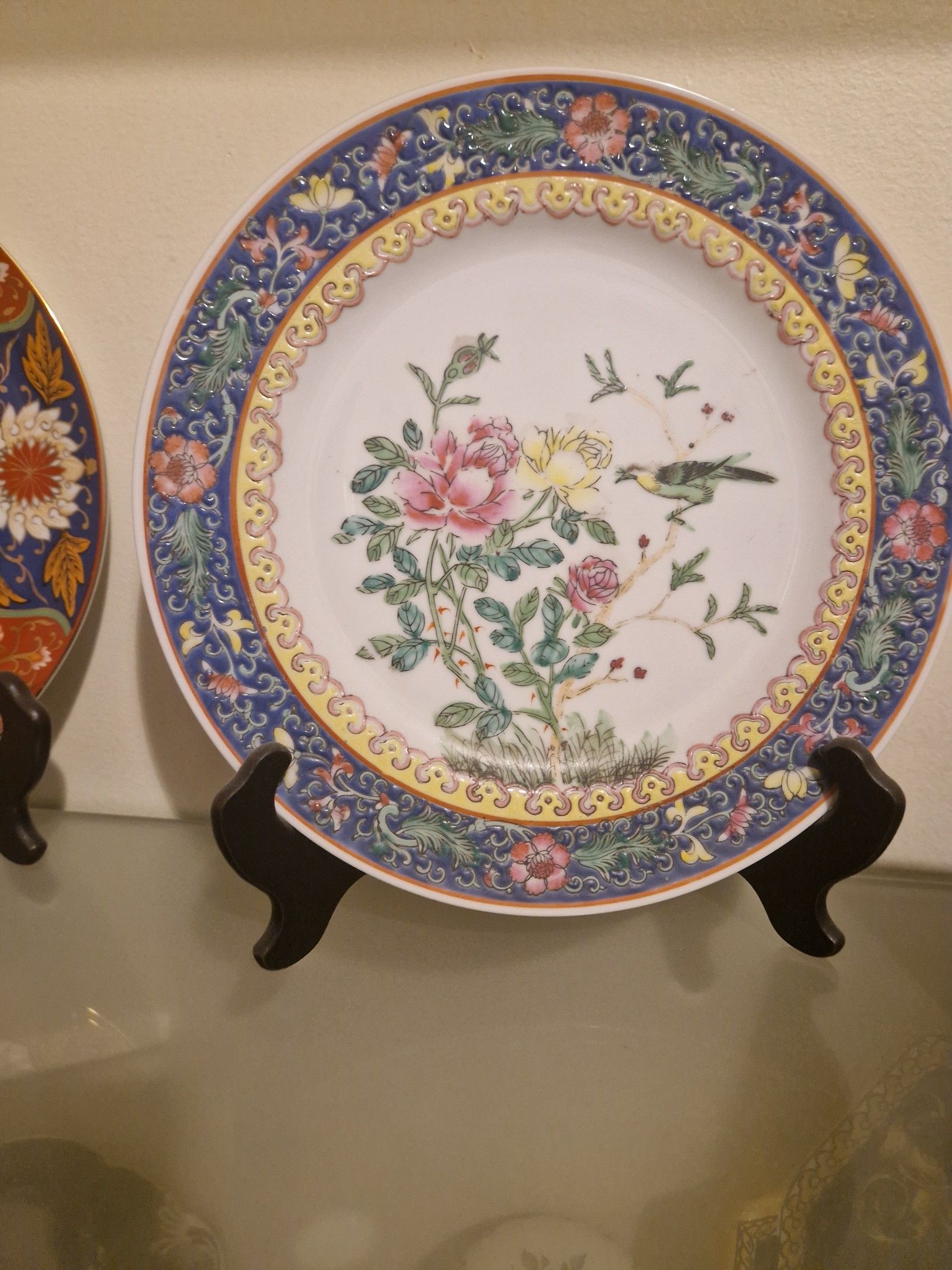 Dix porcelaines asiatiques courantes polychromes : Deux vases, un plat ovale et sept assiettes