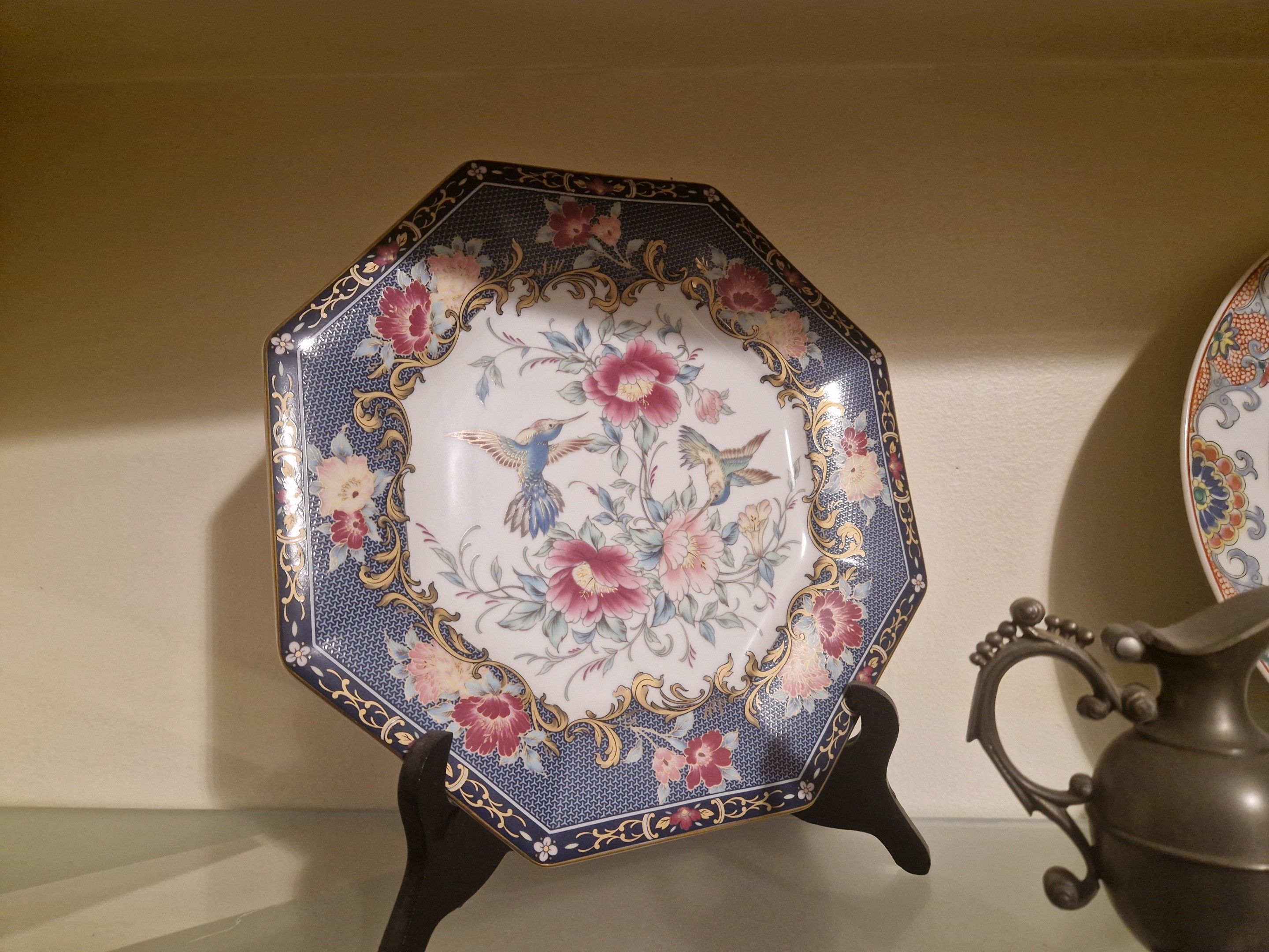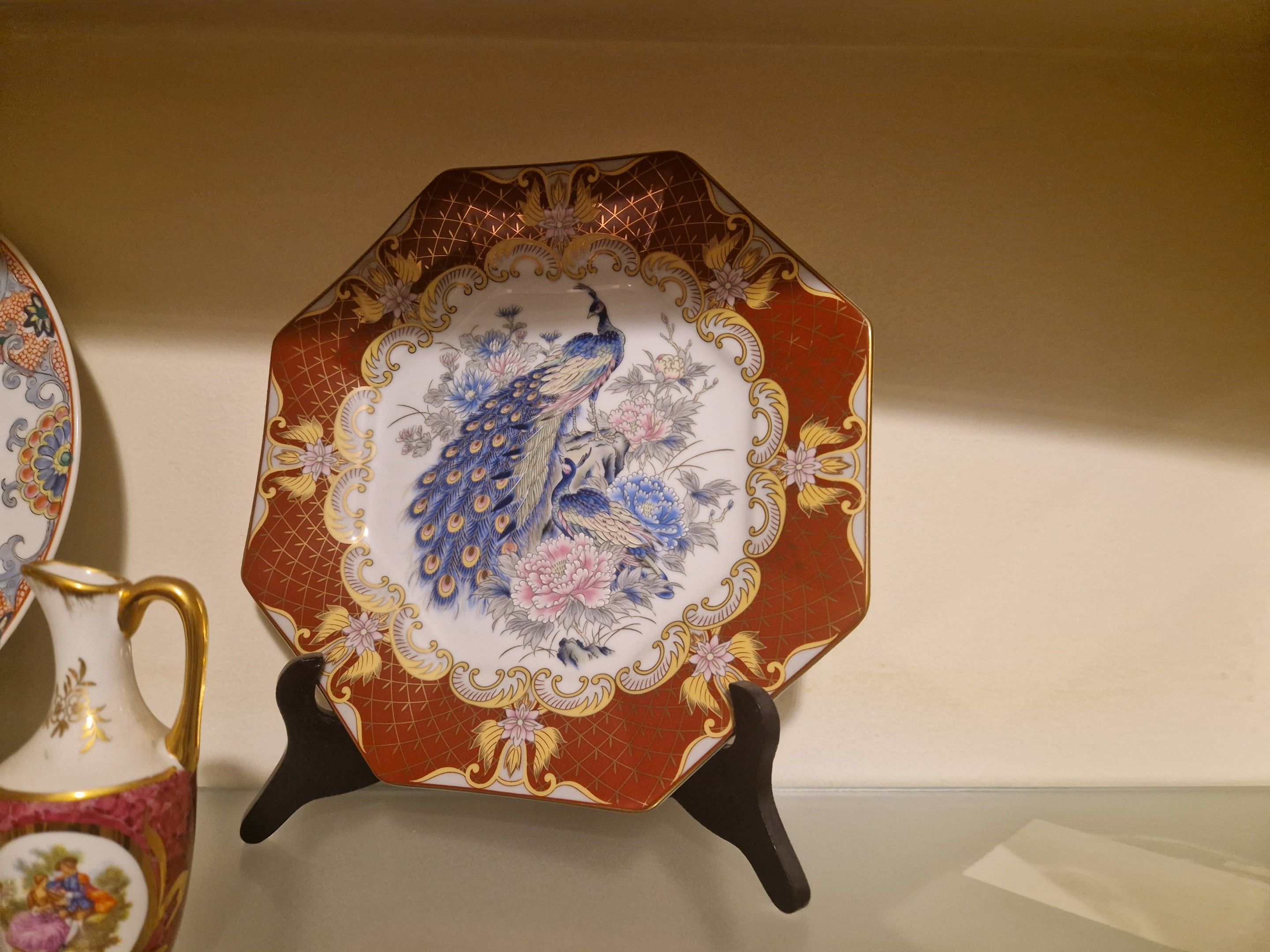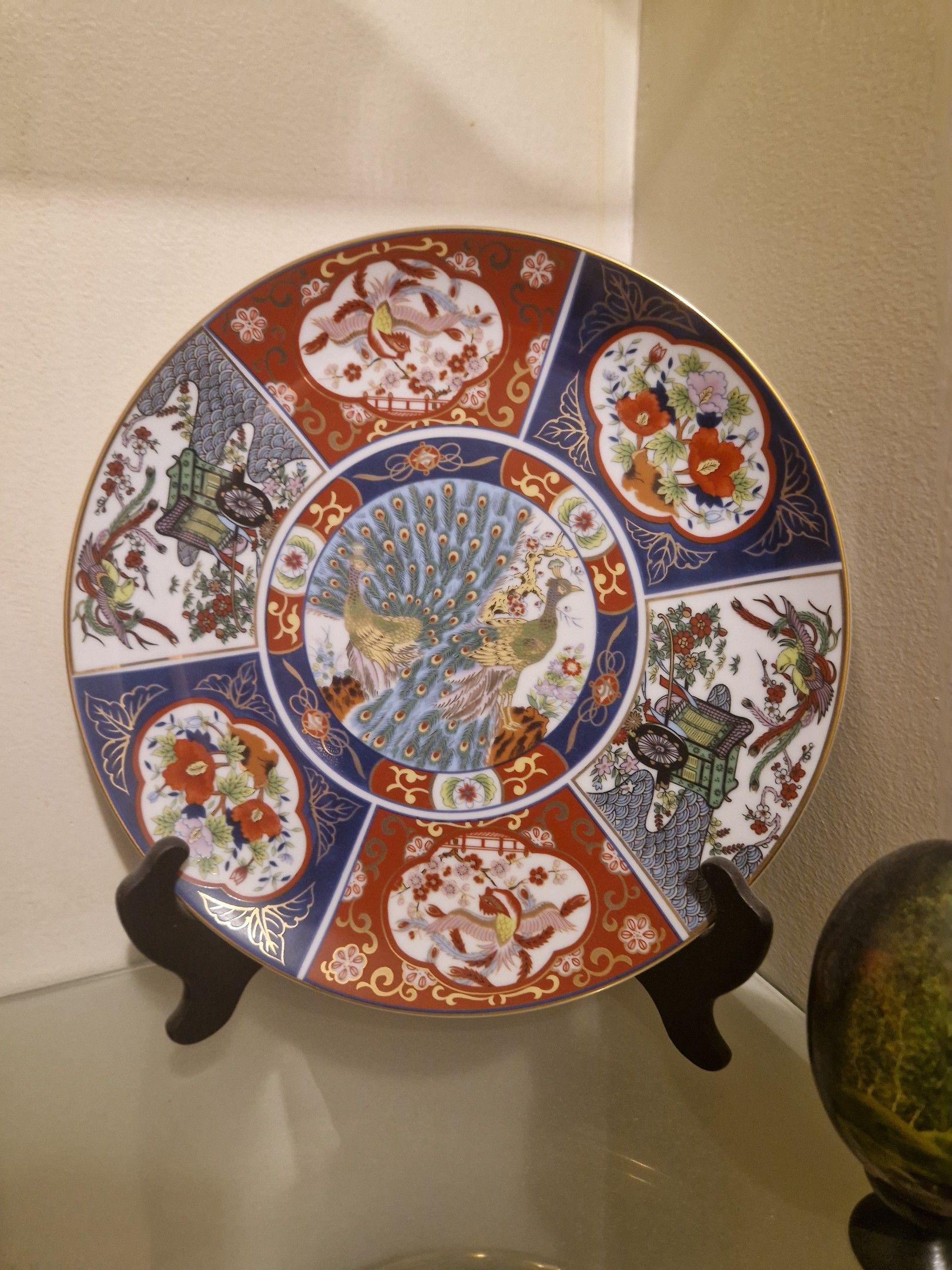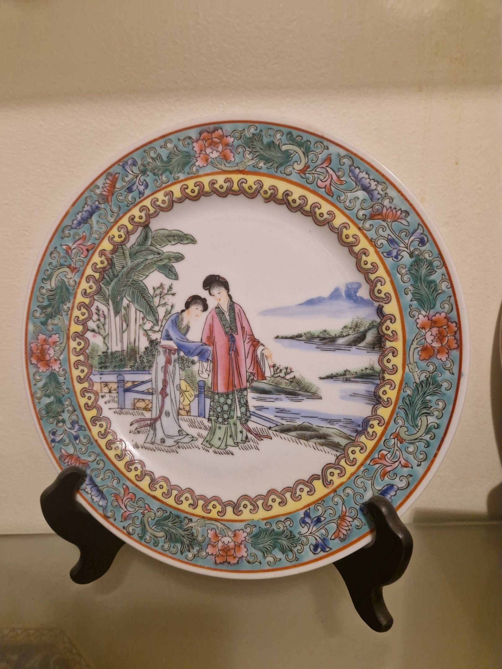 Dix porcelaines asiatiques courantes polychromes : Deux vases, un plat ovale et sept assiettes