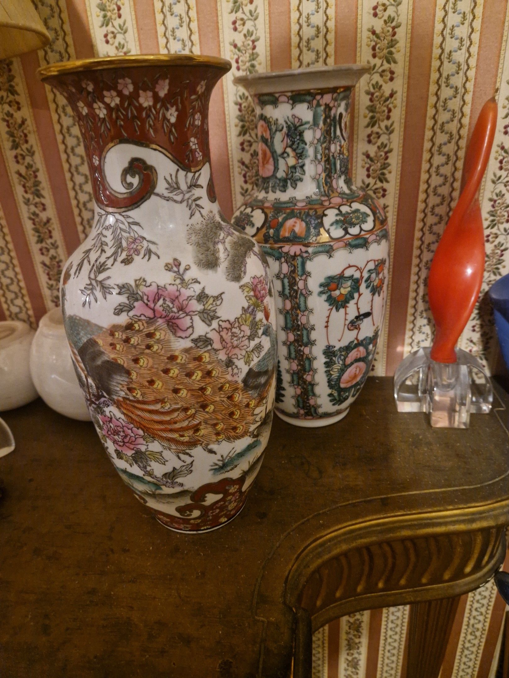Dix porcelaines asiatiques courantes polychromes : Deux vase…