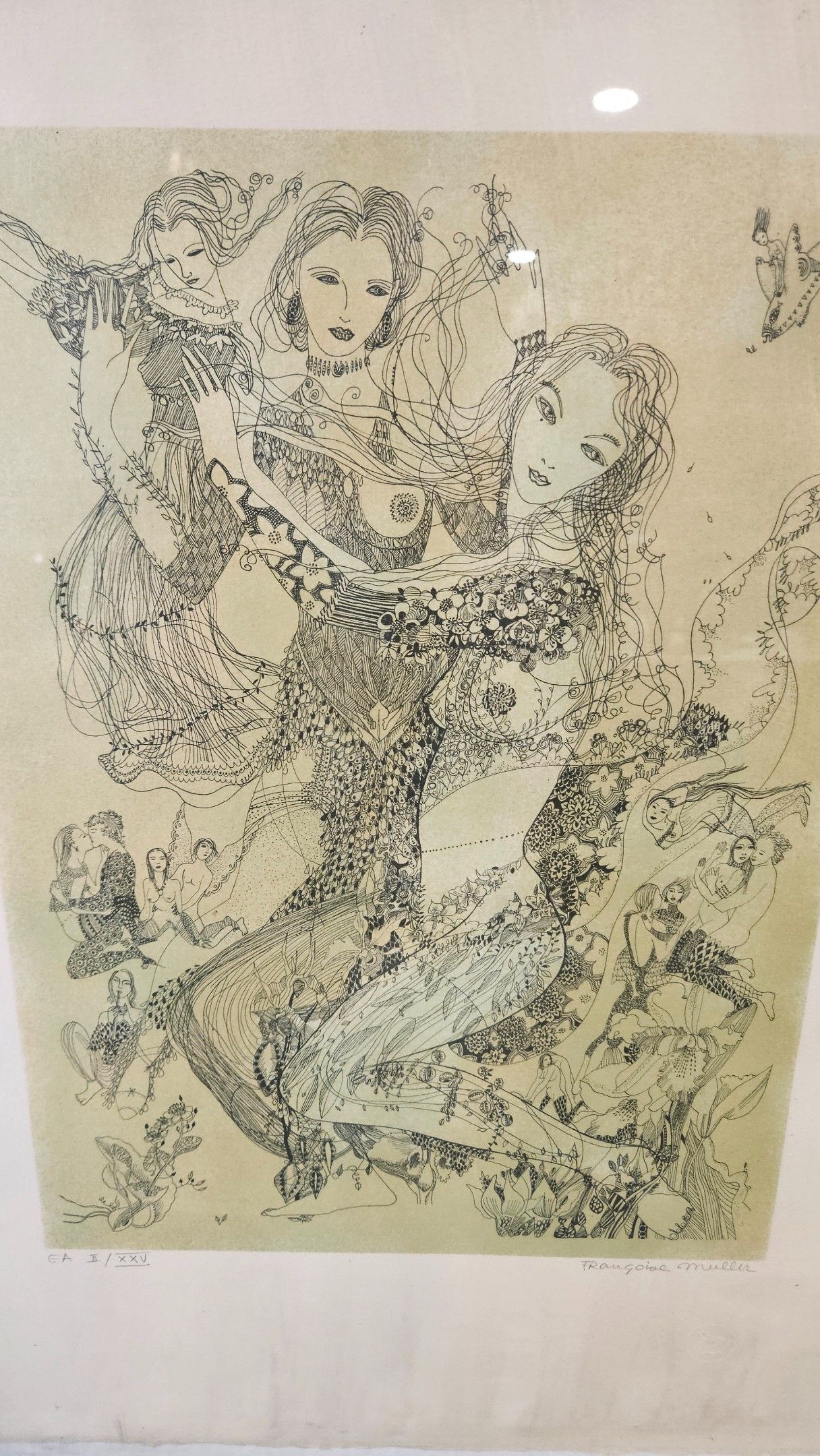 Françoise MULLER (née en 1949) : "Rêves érotiques". Lithographie, contresignée, annotée EA et numérotée II/XXV, 65 x 47,5 cm