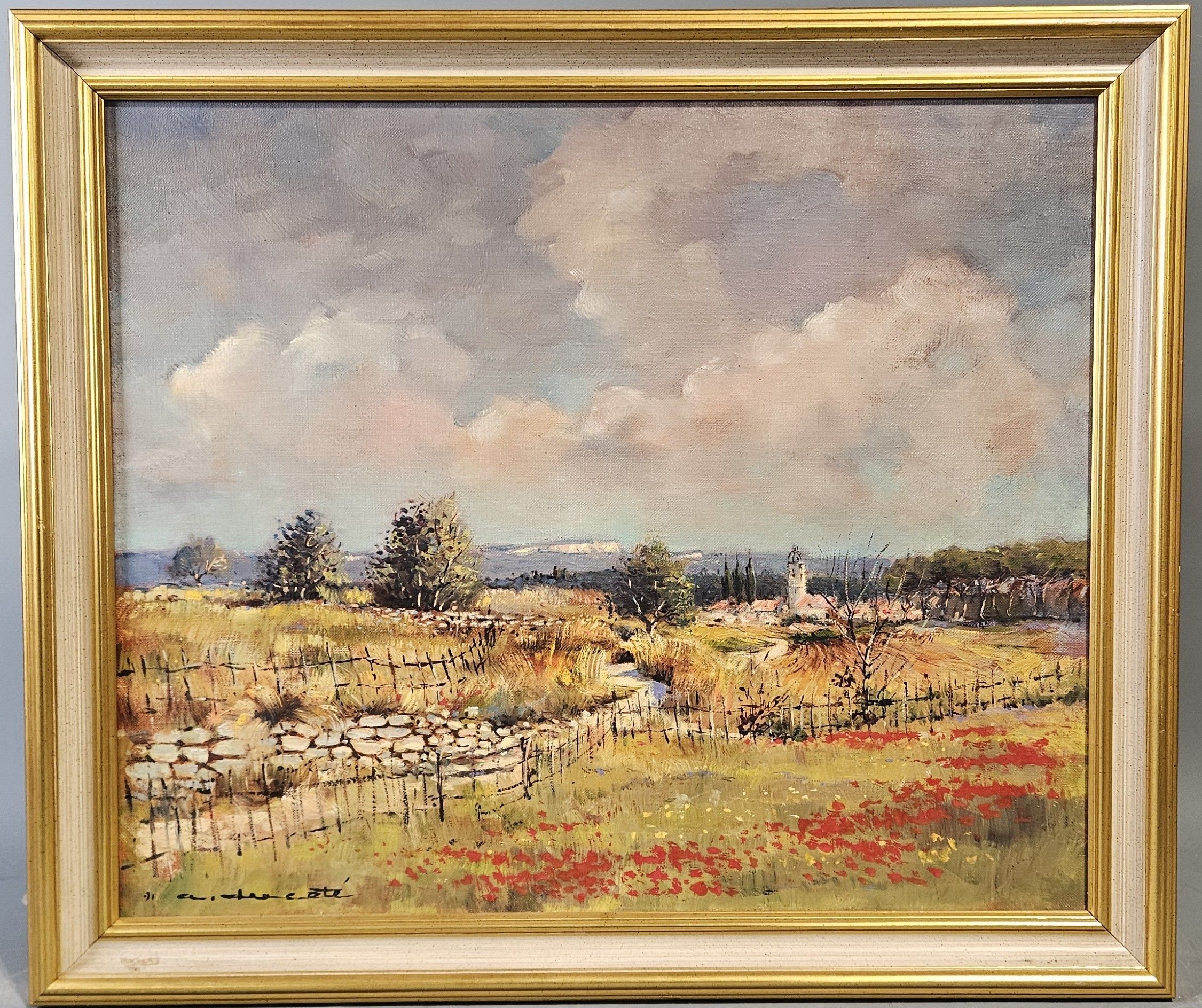 Alain DUCOTE (né en 1937) : "Les coquelicots". Huile sur toile, SBG, 46 x 55 cm