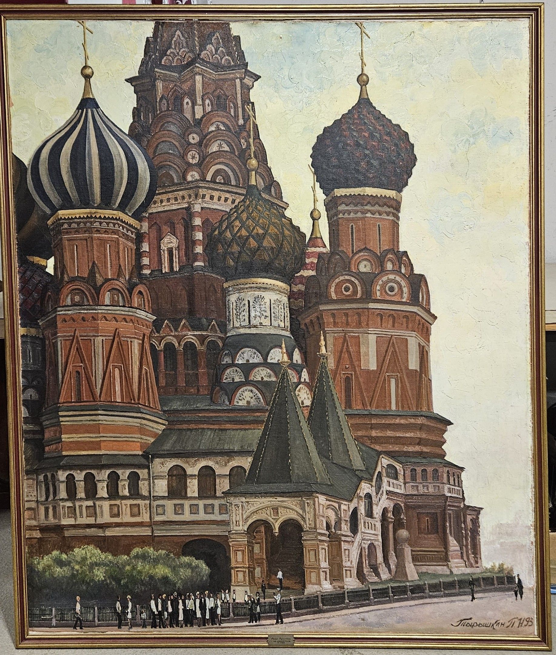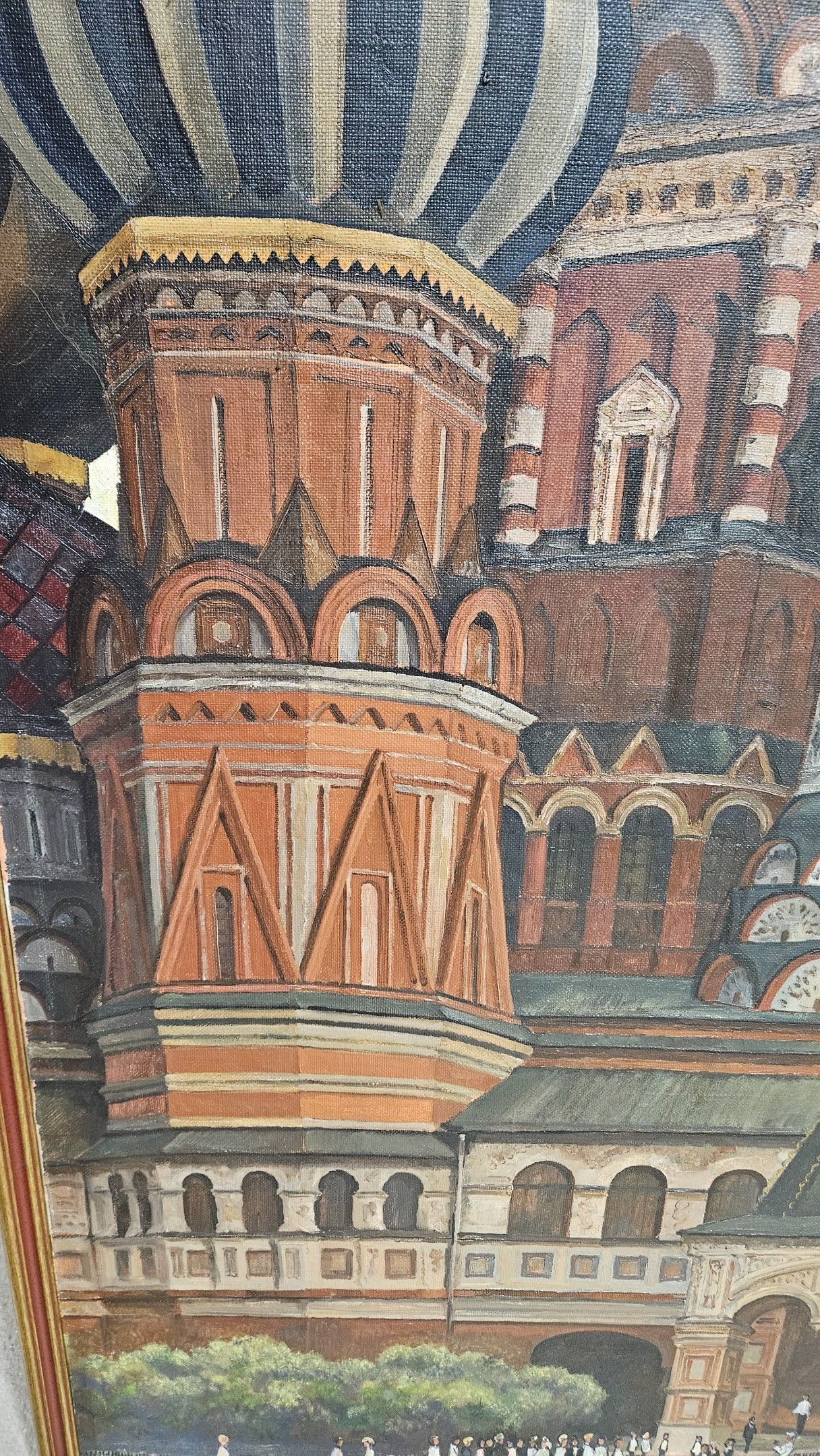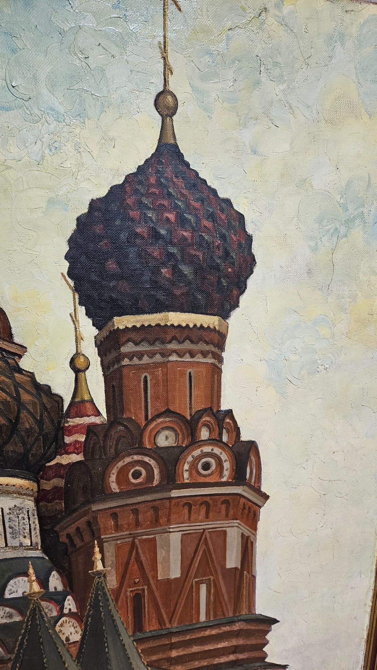 Pavel TYRYSHKIN, Ecole russe contemporaine : "Cathédrale Saint-Basile-le-Bienheureux à Moscou". Huile sur toile, SBM, datée 1993, annotée en cyrillique au dos, 144 x 120 cm
