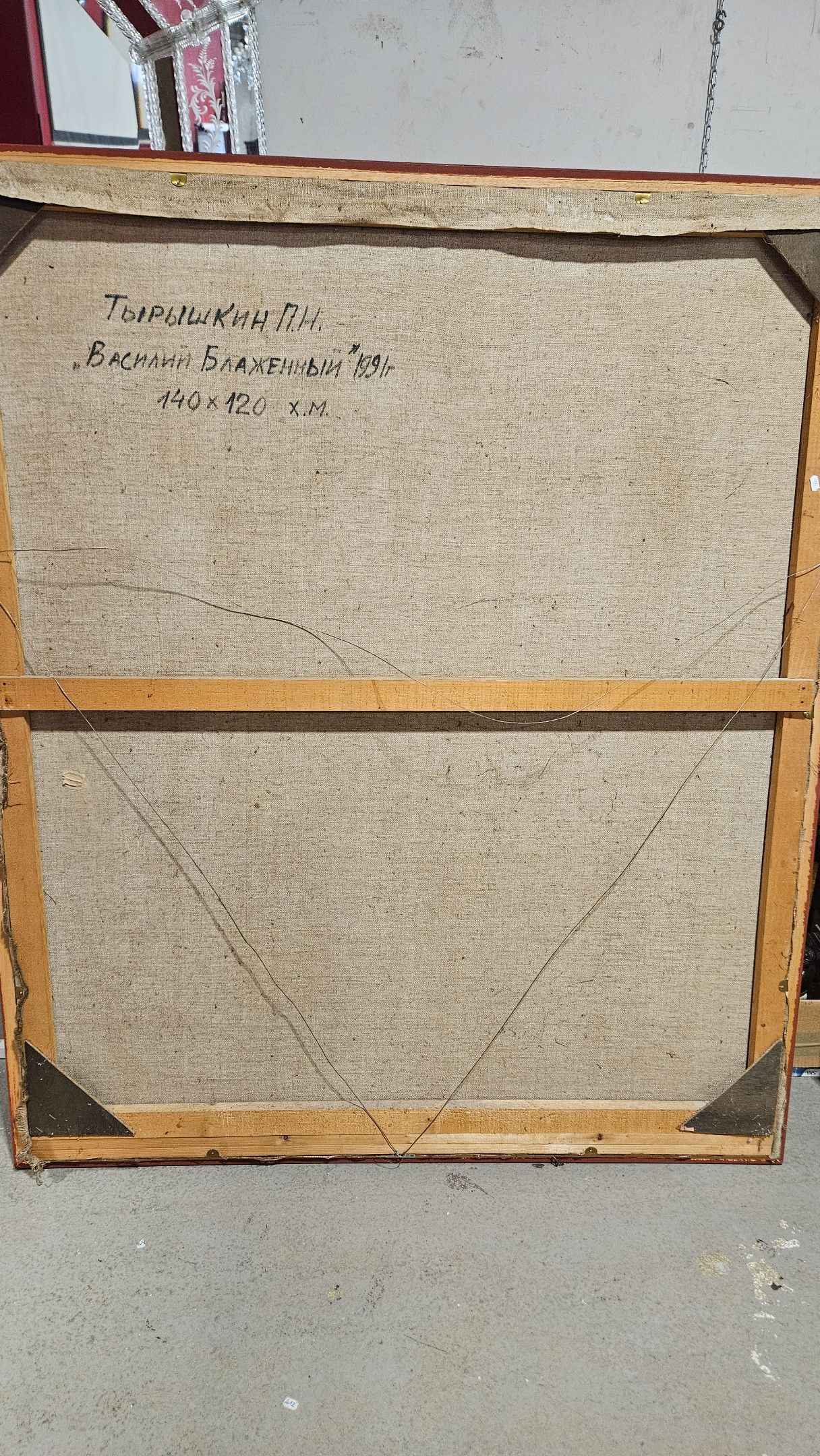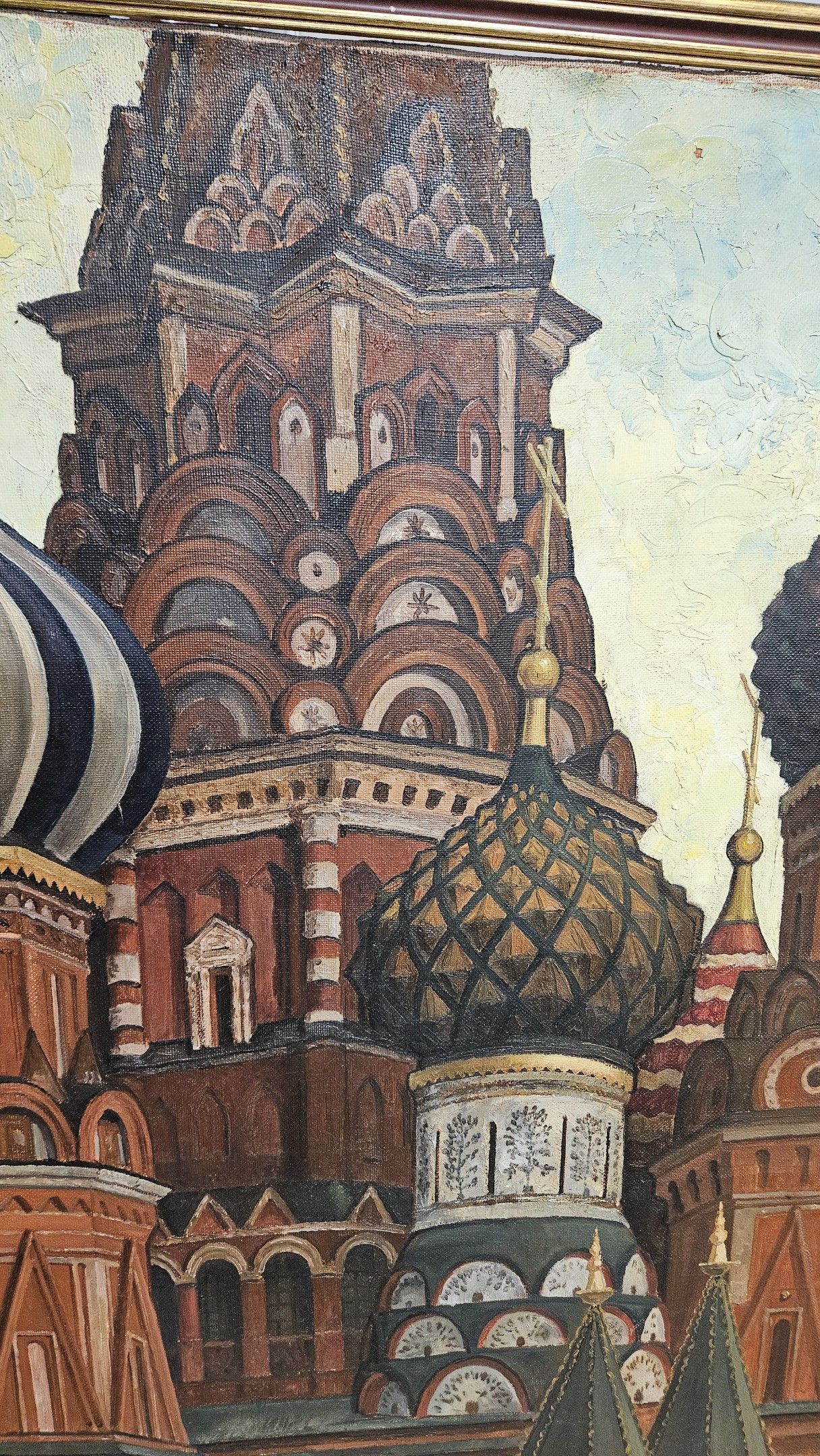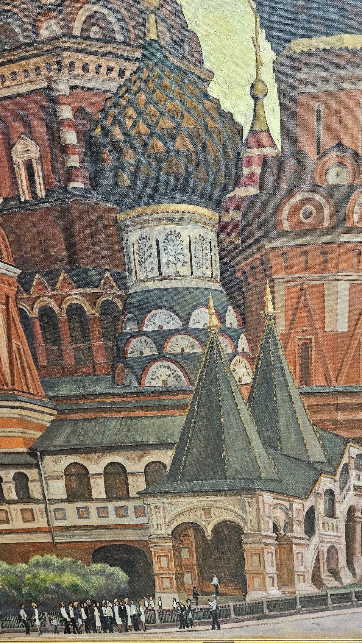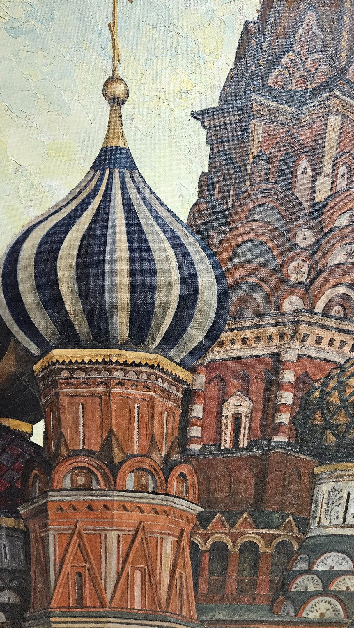 Pavel TYRYSHKIN, Ecole russe contemporaine : "Cathédrale Saint-Basile-le-Bienheureux à Moscou". Huile sur toile, SBM, datée 1993, annotée en cyrillique au dos, 144 x 120 cm