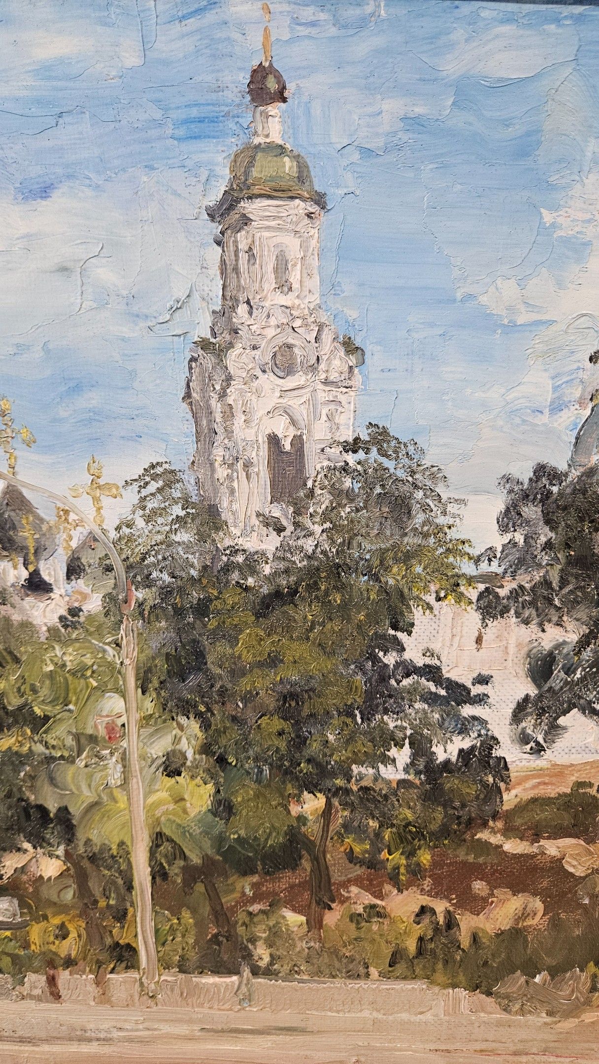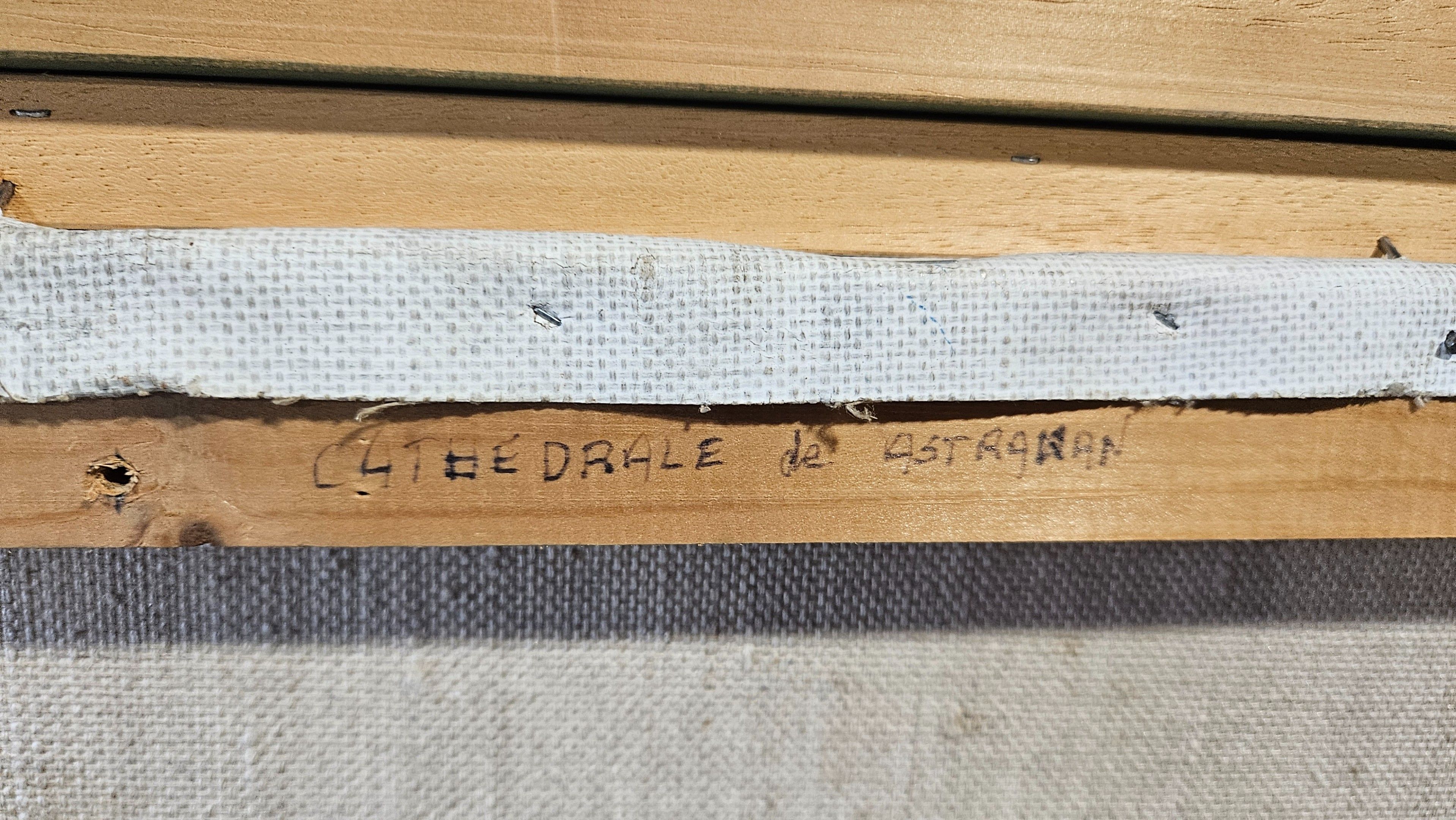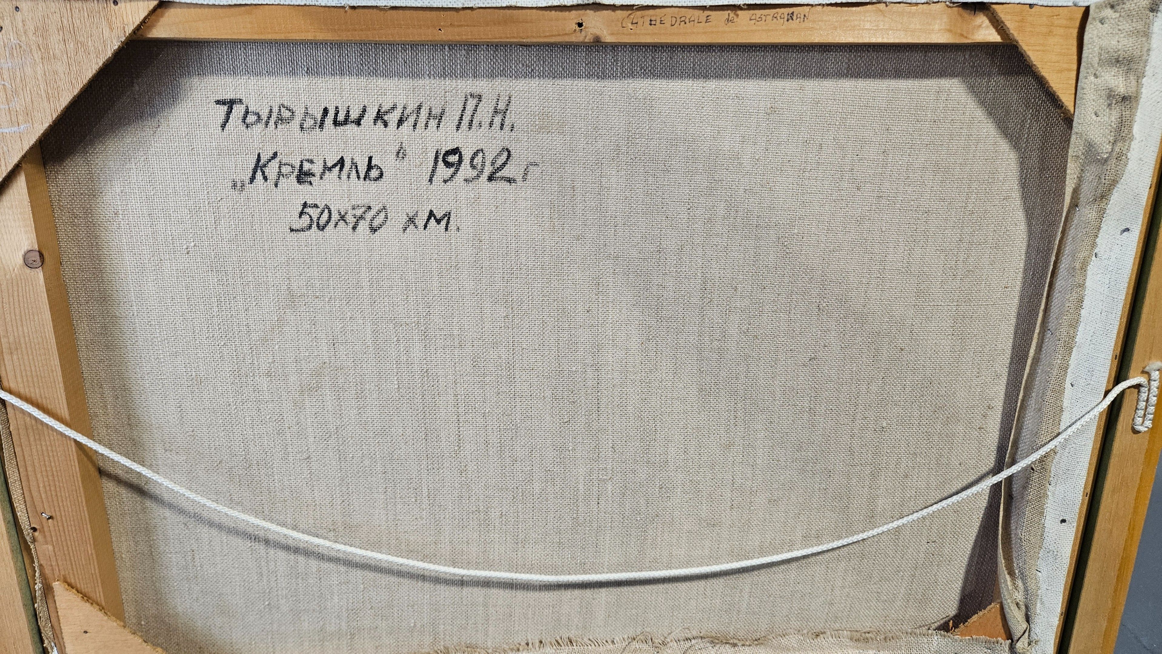 Pavel TYRYSHKIN, Ecole russe contemporaine : "La cathédrale d'Astrakan". Huile sur toile, SBD et datée (19)92, annotée au dos, 50 x 70 cm