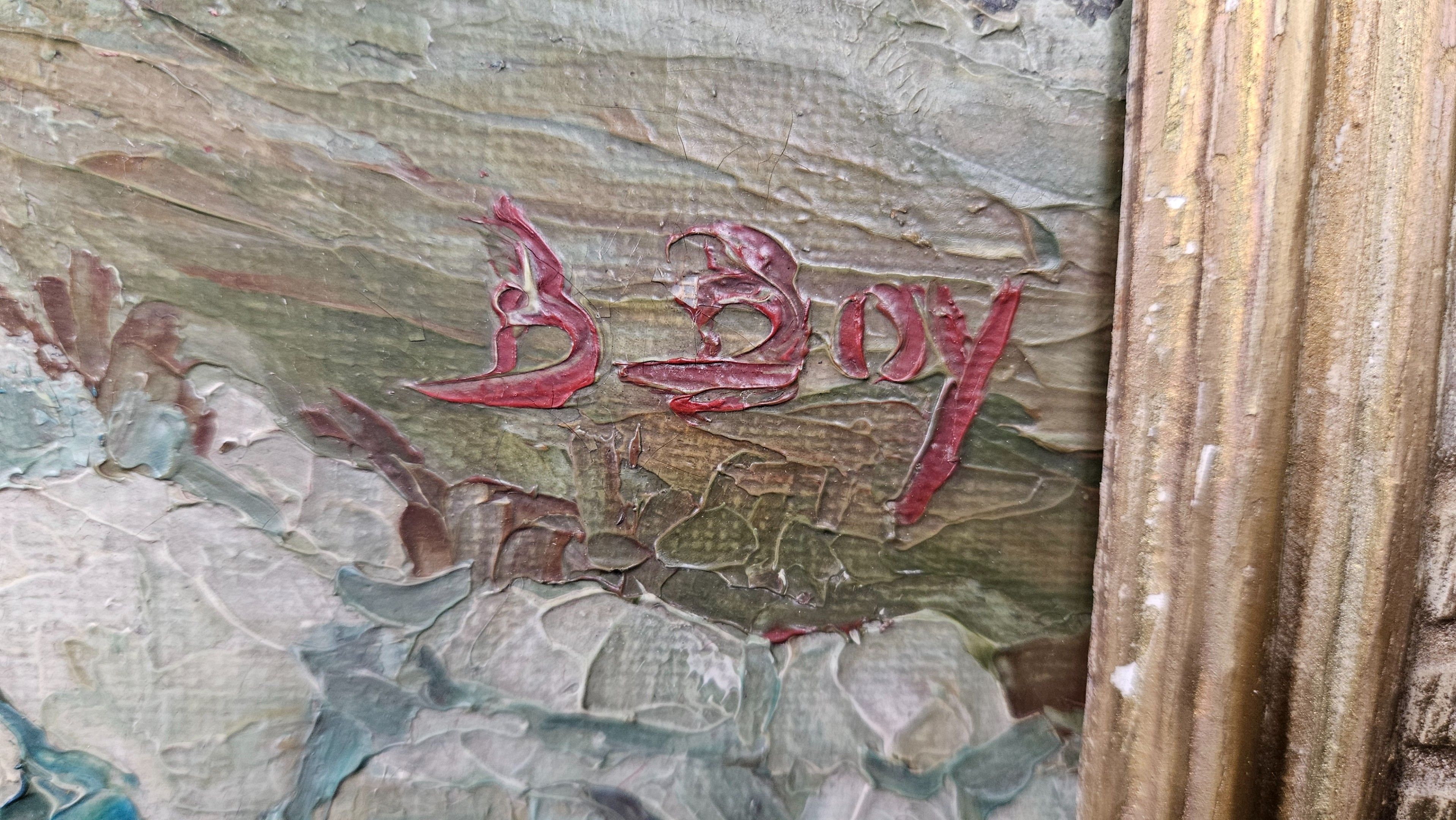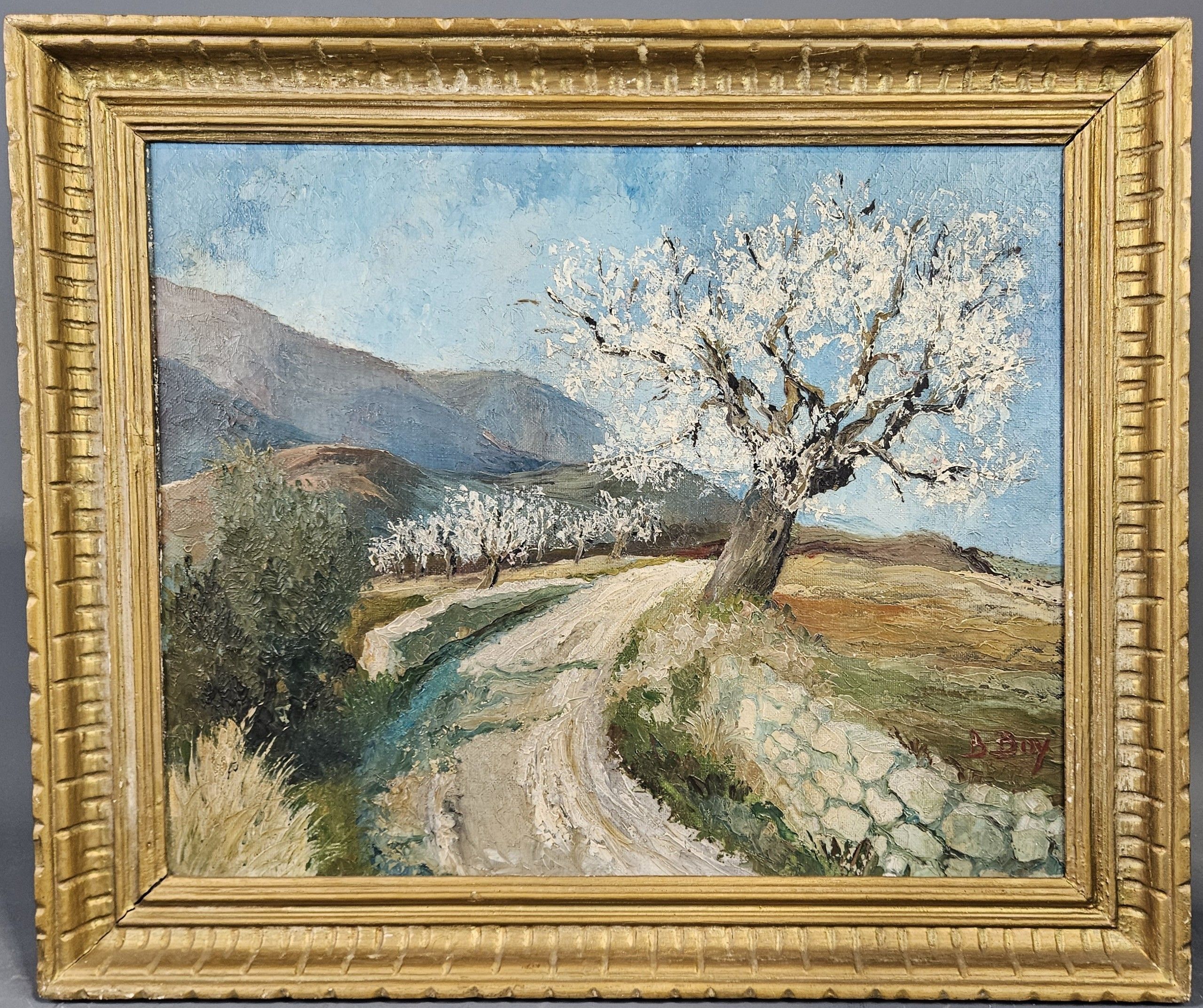 B. BOY, Ecole mi-XXème : "Les amandiers". Huile sur toile, SBD, 38 x 46 cm