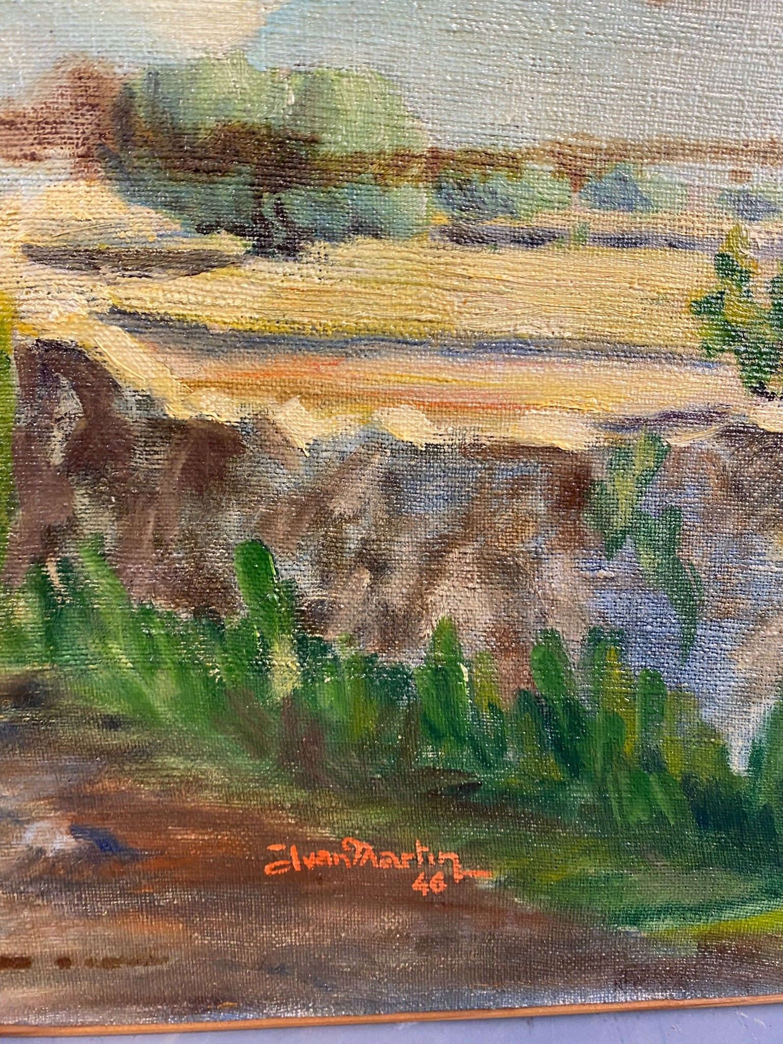 Peinture d'amateur figurant un mas en Provence.