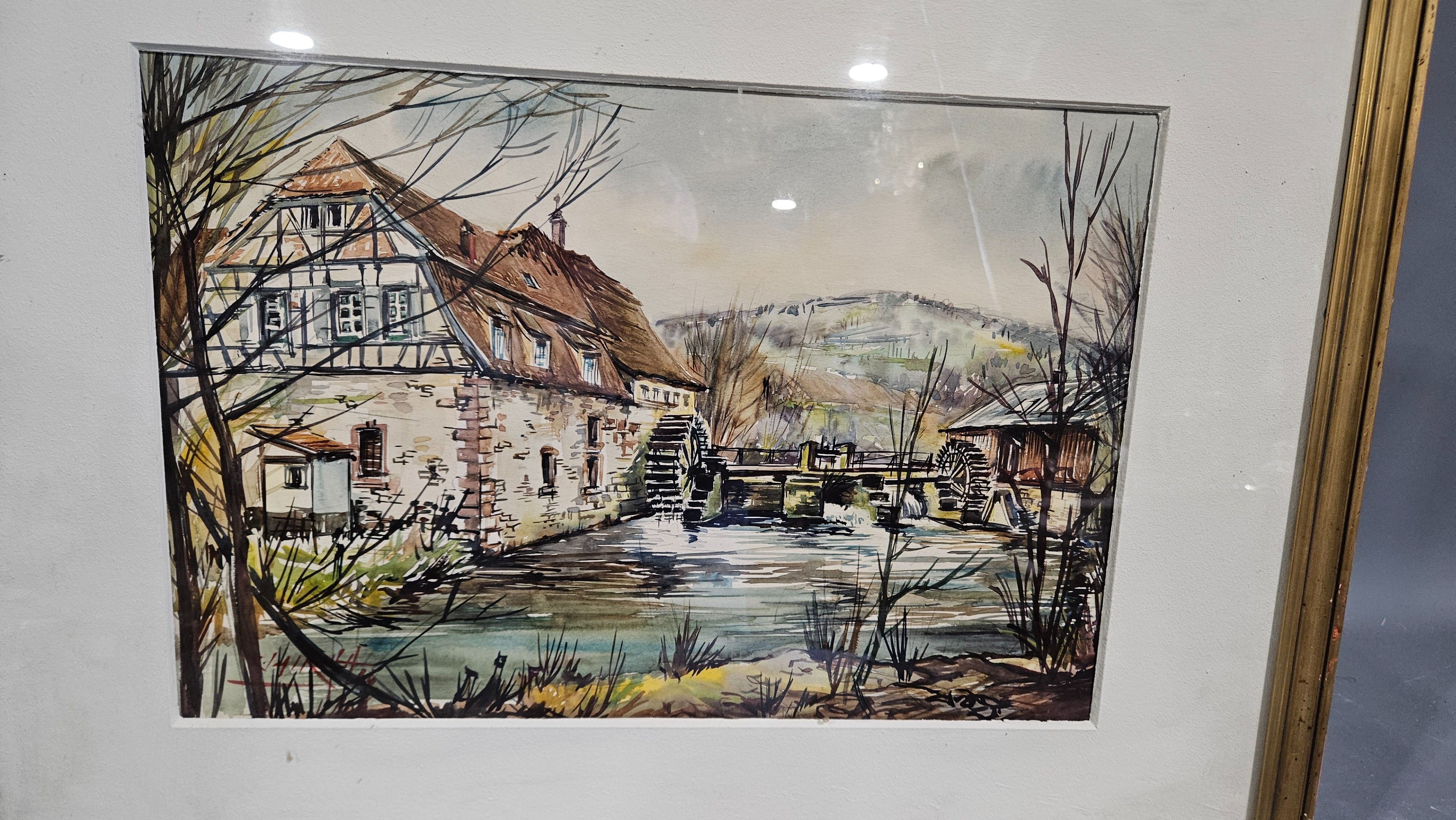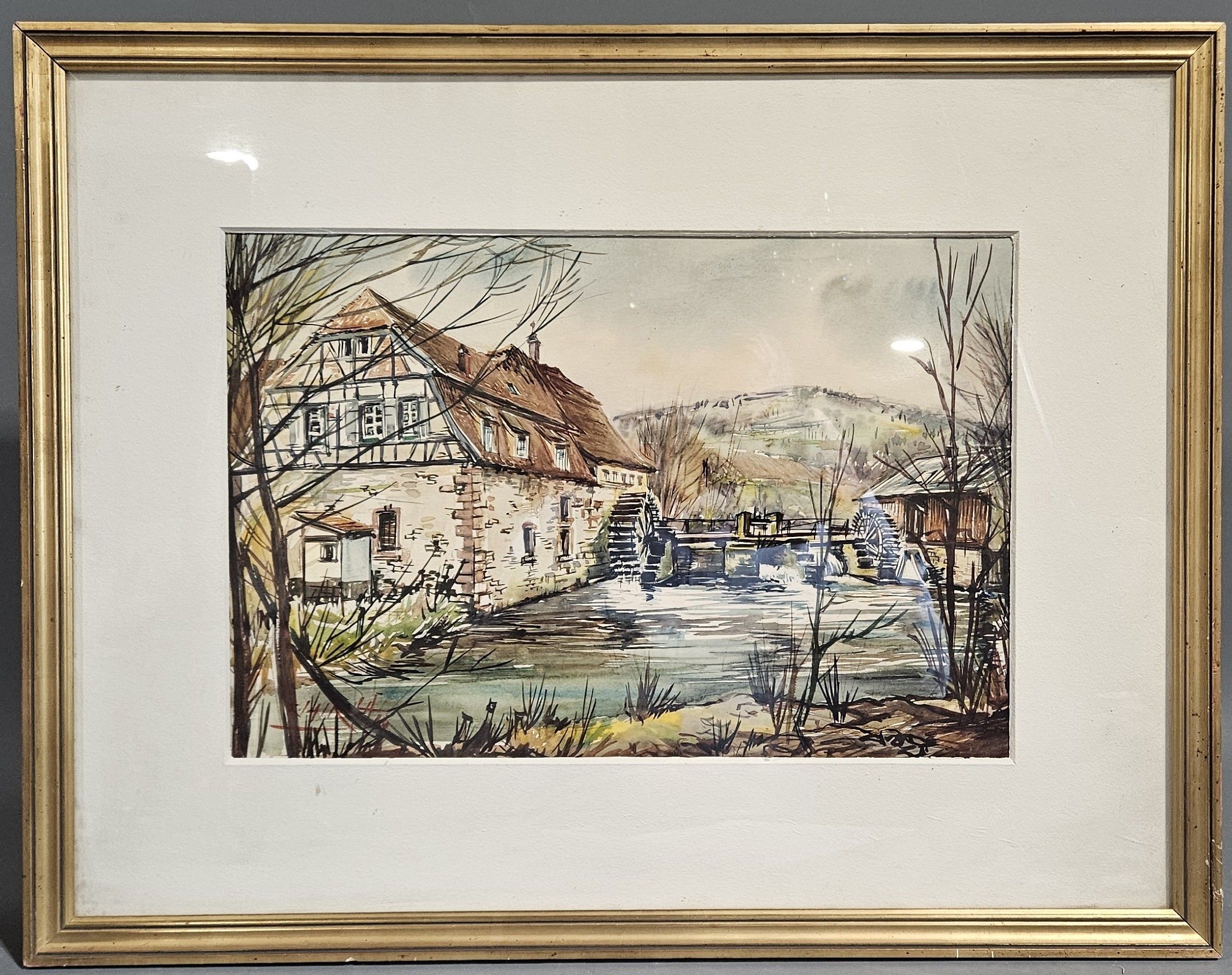 Roland IROLLA (né en 1935) : "Le moulin à eau". Aquarelle, SBG, 30,5 x 46 cm à vue