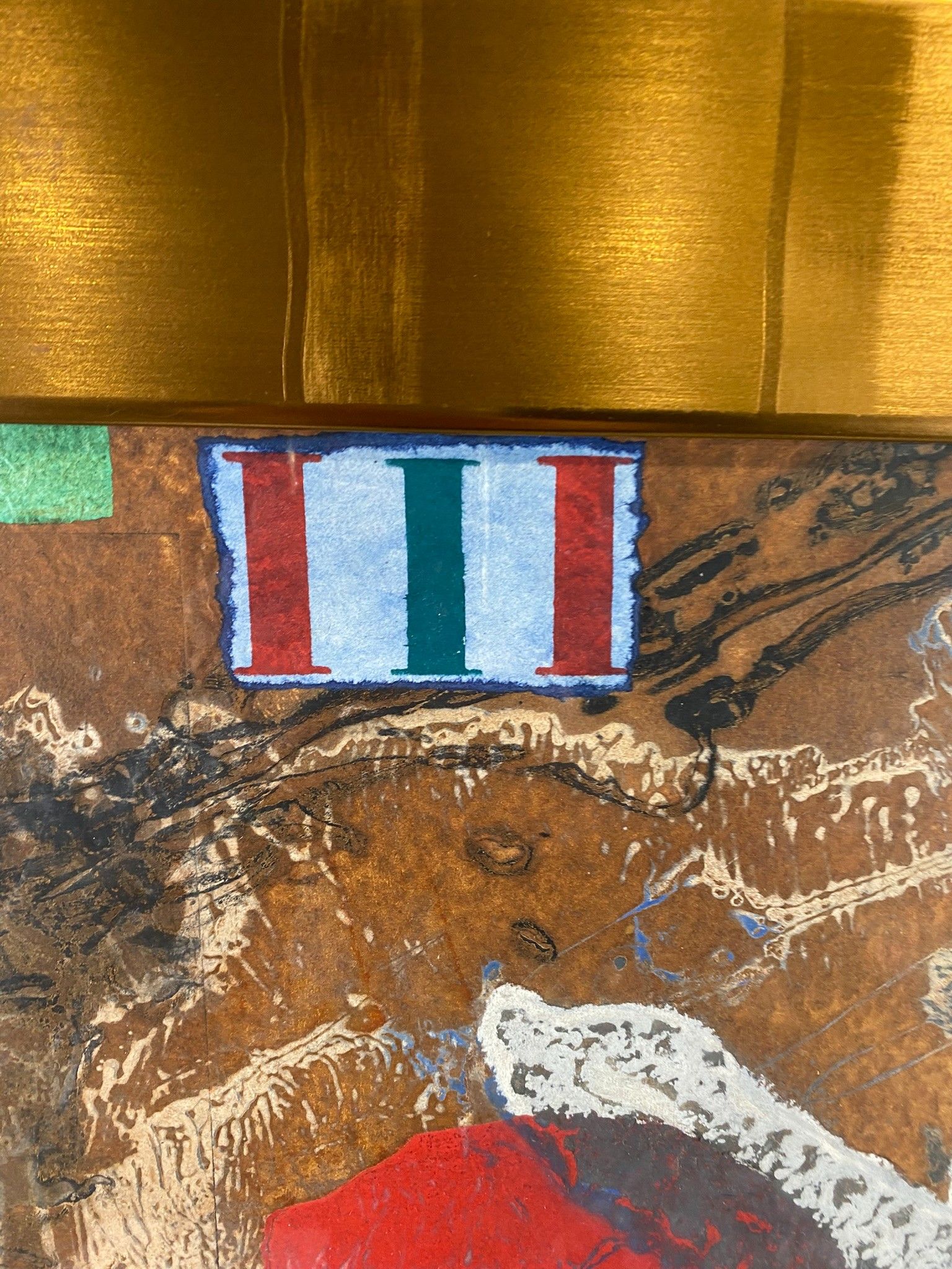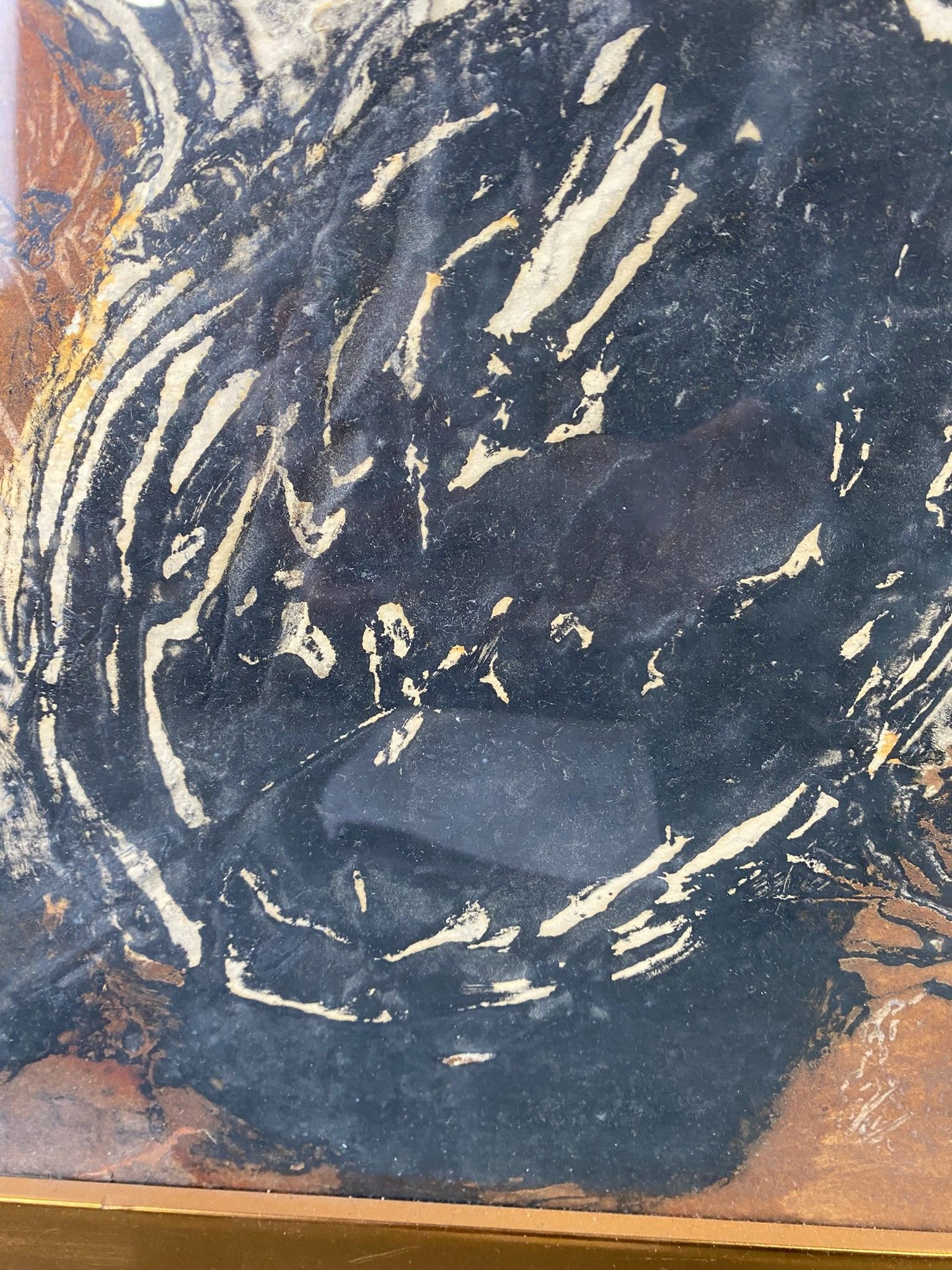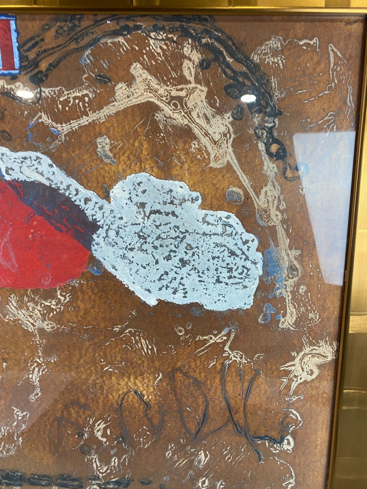LIONEL : "Composition abstraite". Gravure carborandum en couleur, signée dans la planche et numérotée IV/X. 55 x 74 cm à vue
