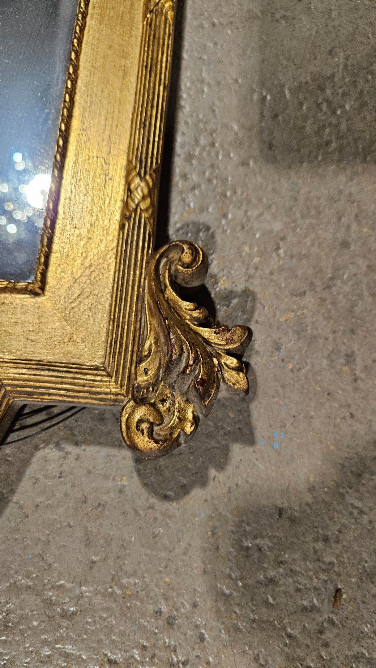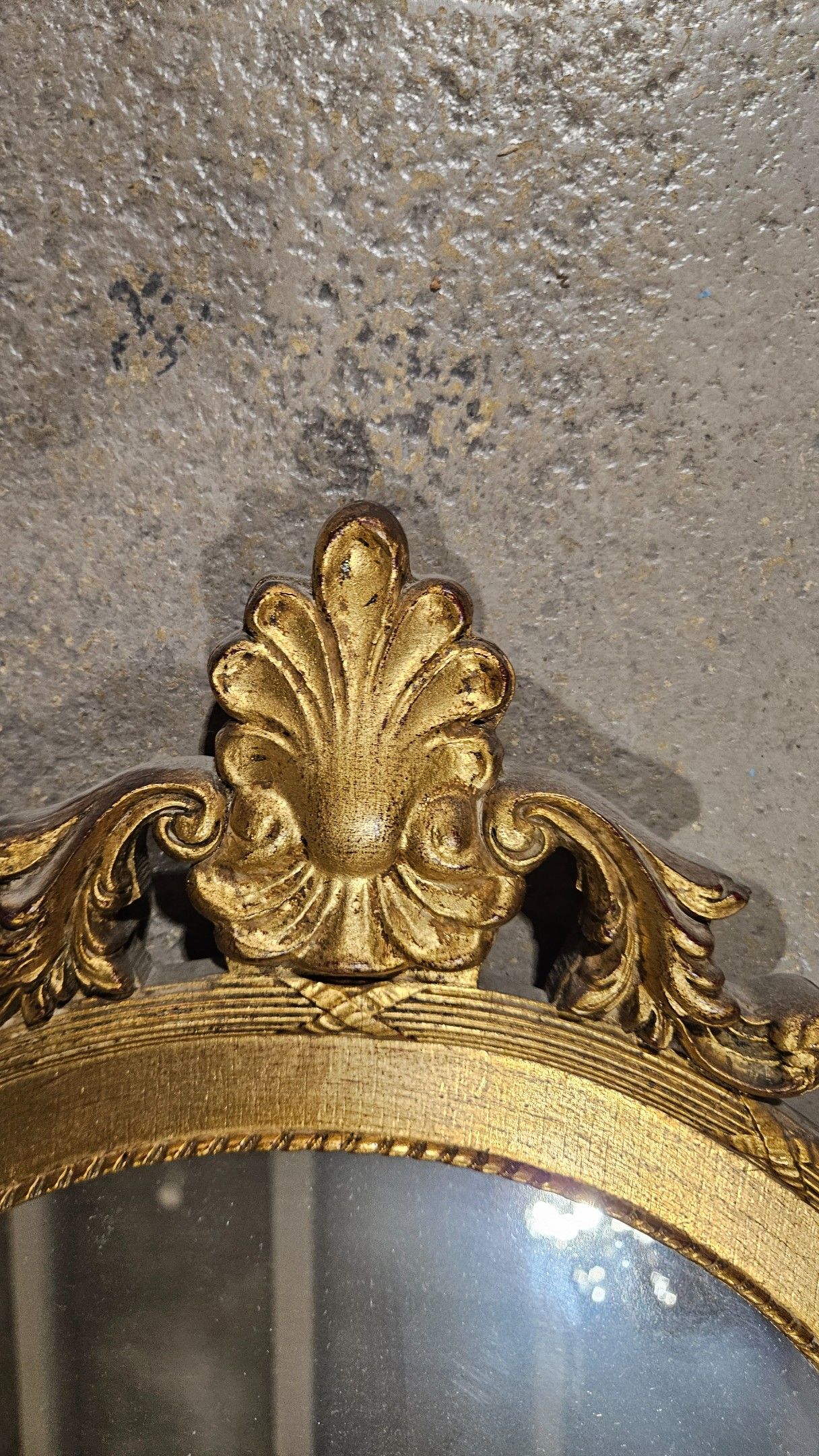 Petit miroir doré à fronton centré. Hauteur : 72 cm