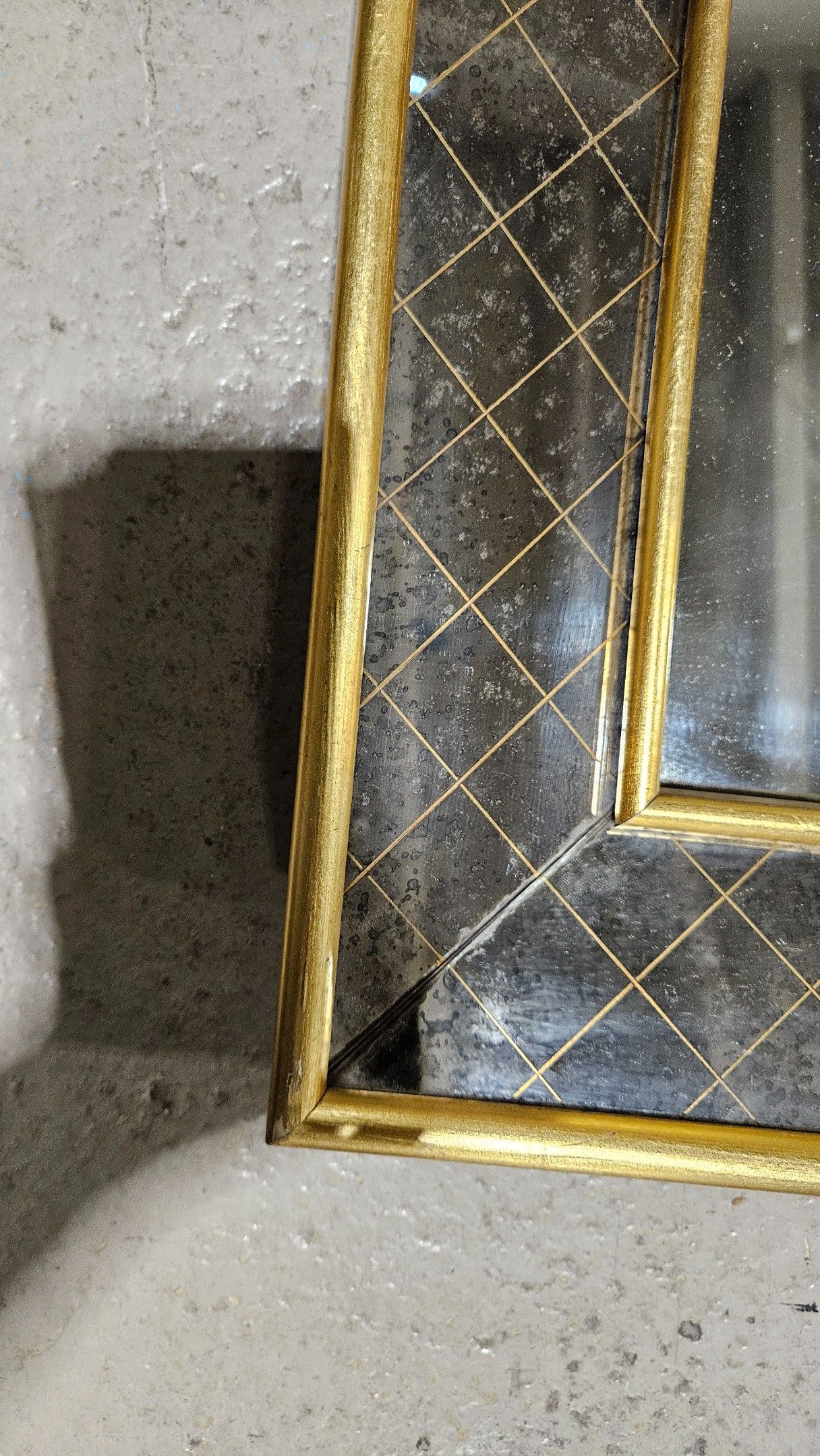 Petit miroir rectangulaire à parecloses soulignées de croisillons dorés. 65 x 47 cm