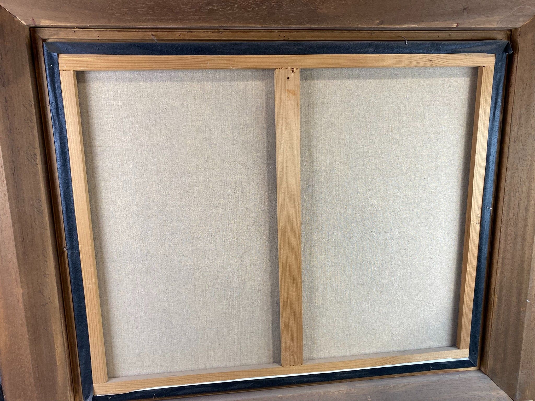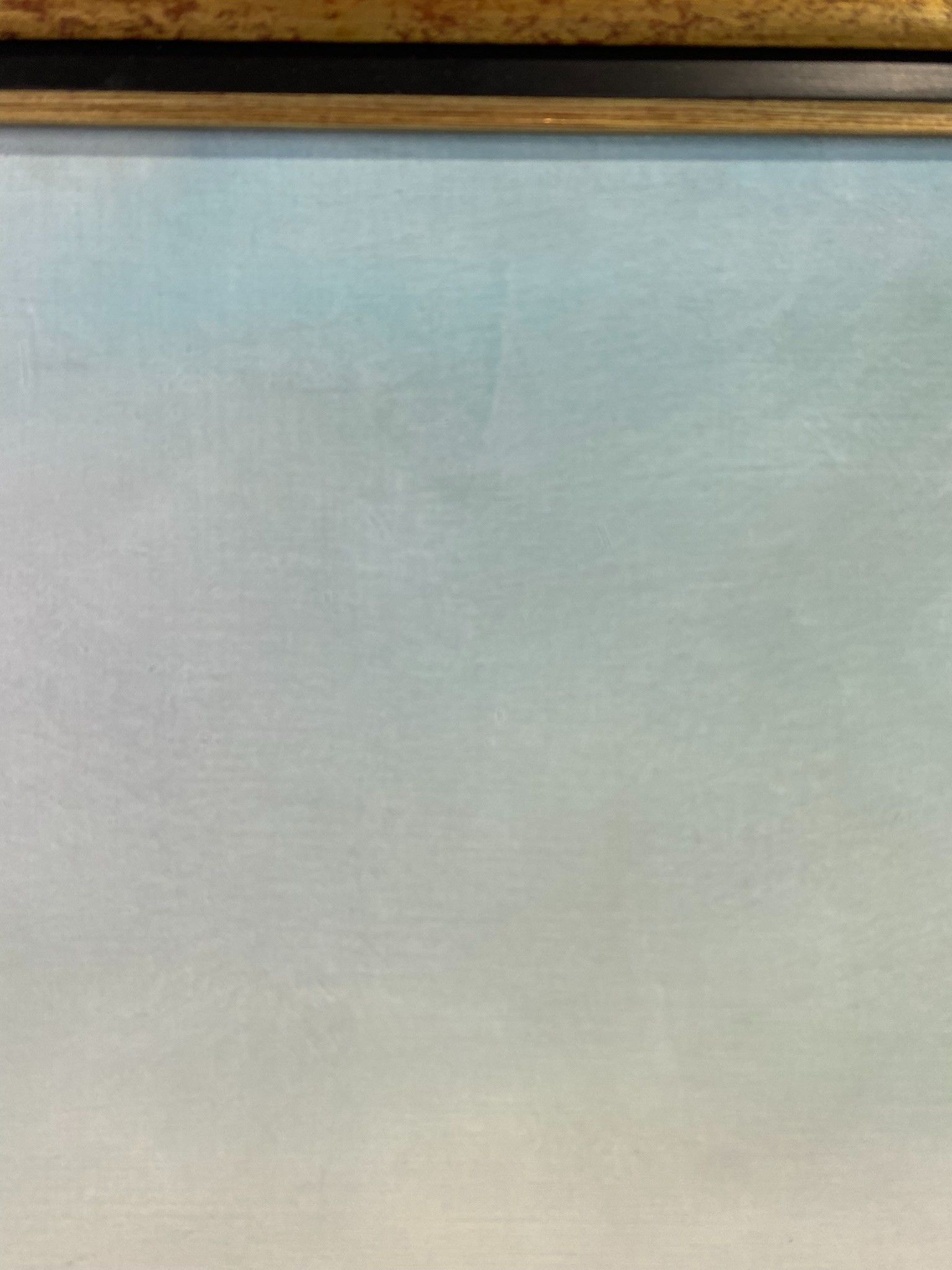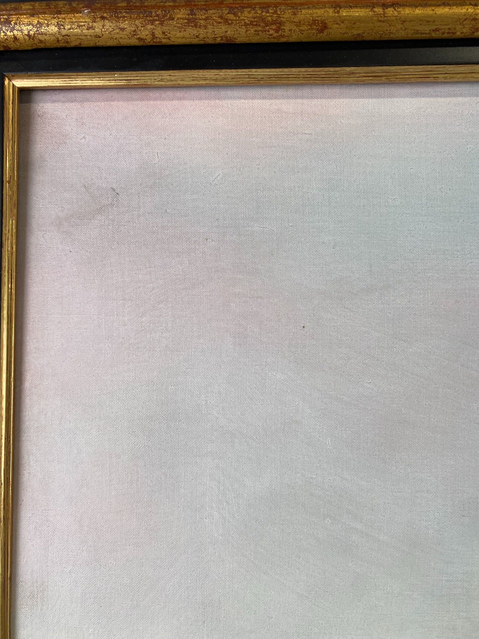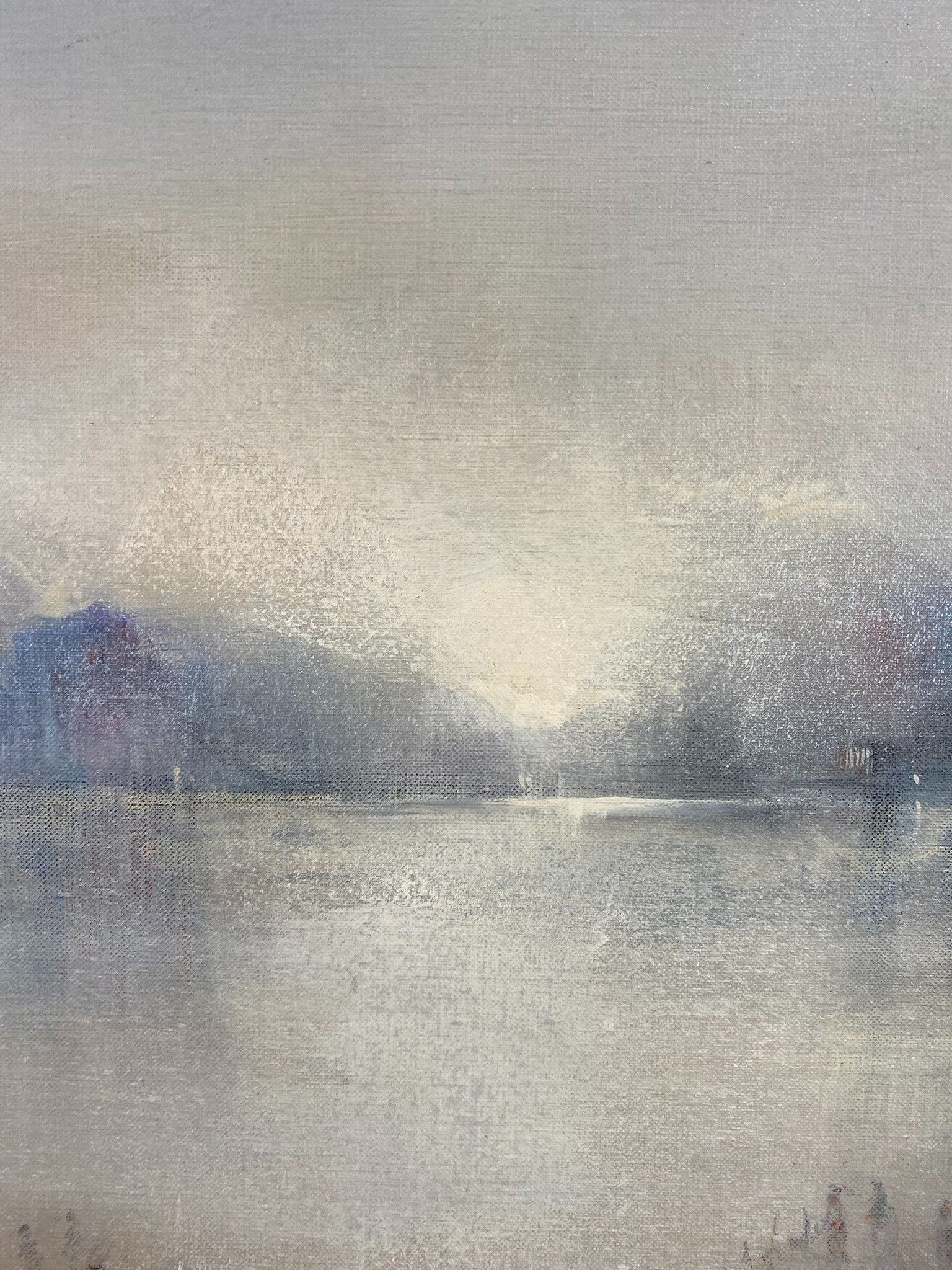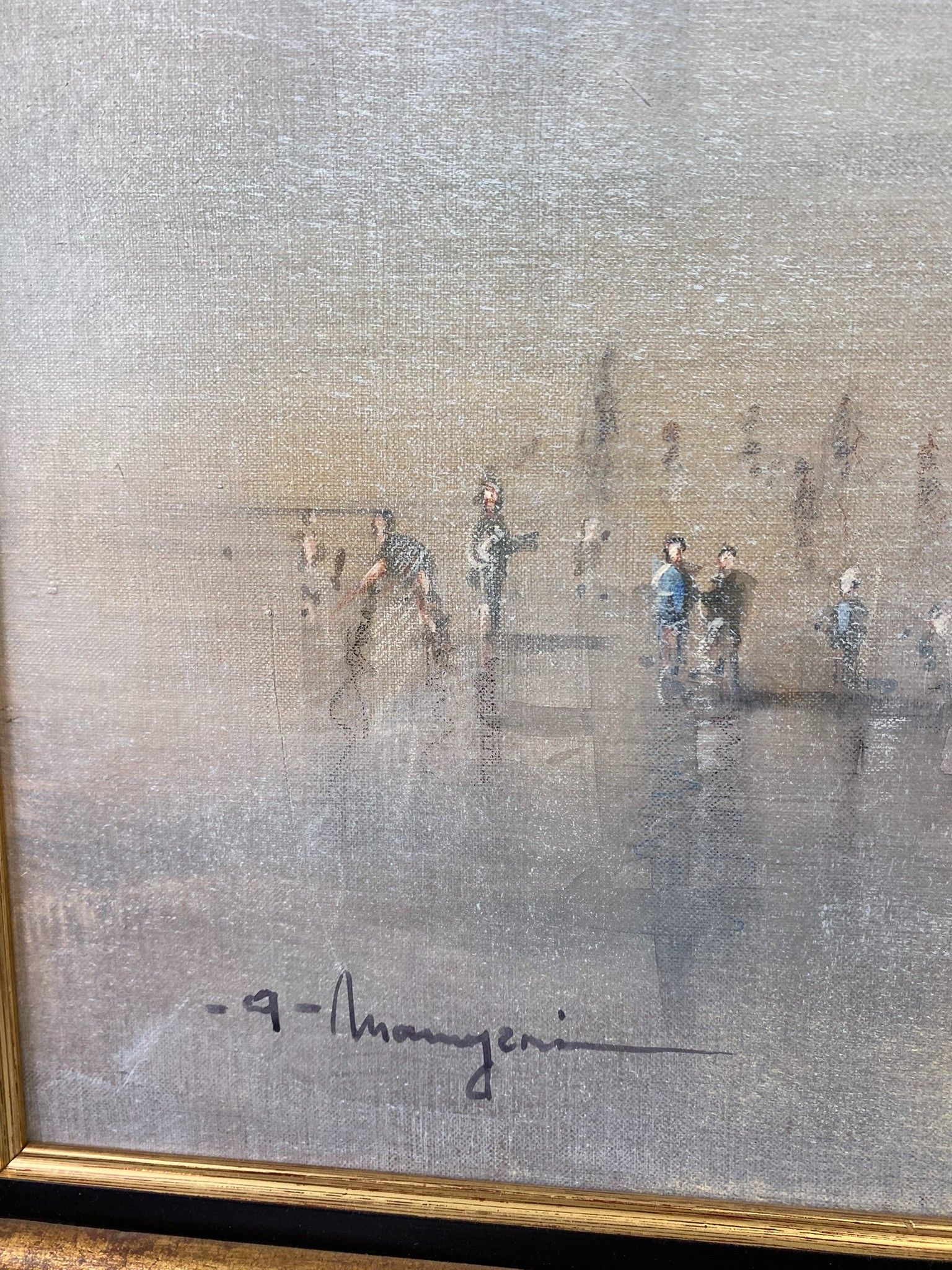 Ecole surréaliste moderne : "Paysage gris animé de personnage". Huile sur toile, SBG,
