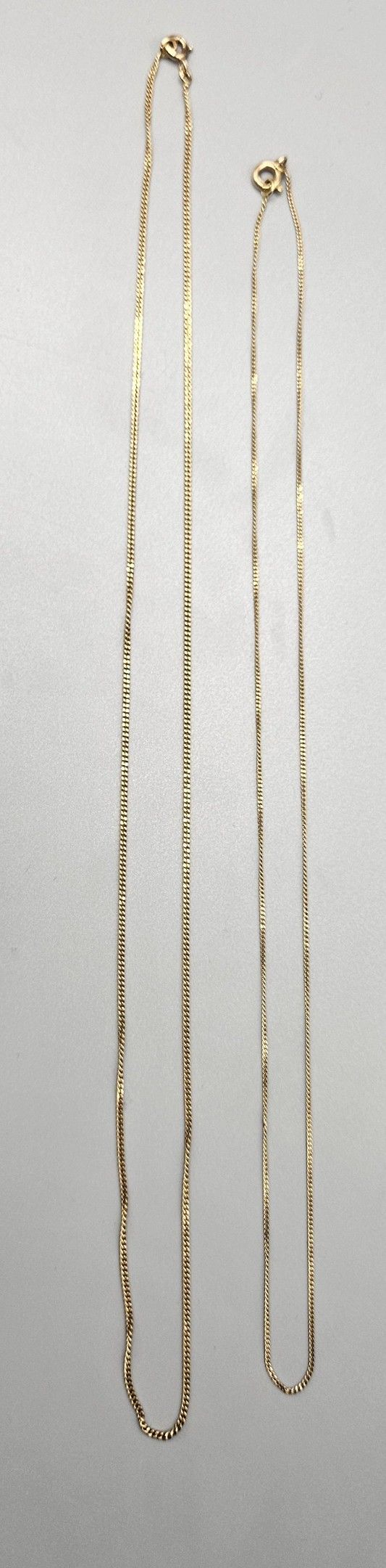 Lot de deux fines chaînes en or (en règle). 6,4 gr. Longueur : 56 et 49 cm