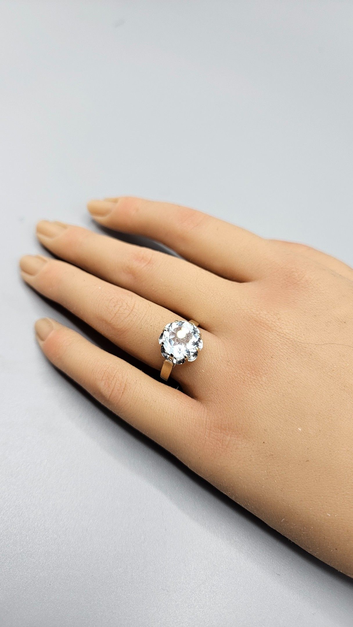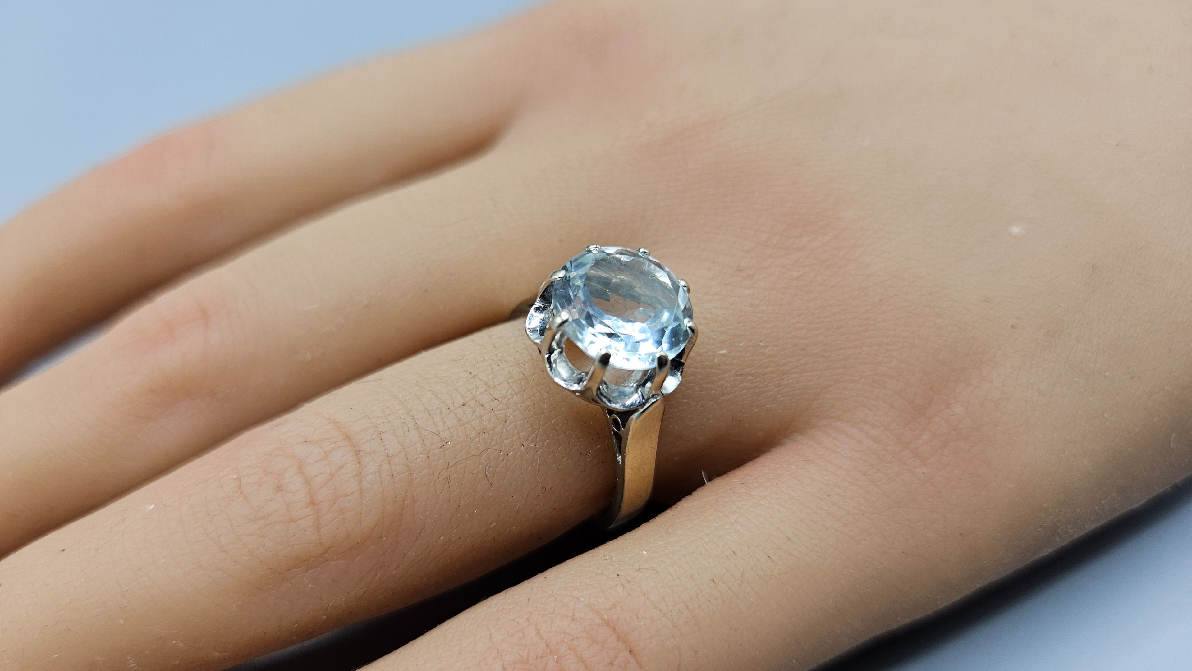 Bague en or gris (en règle) et verroterie imitation diamant.